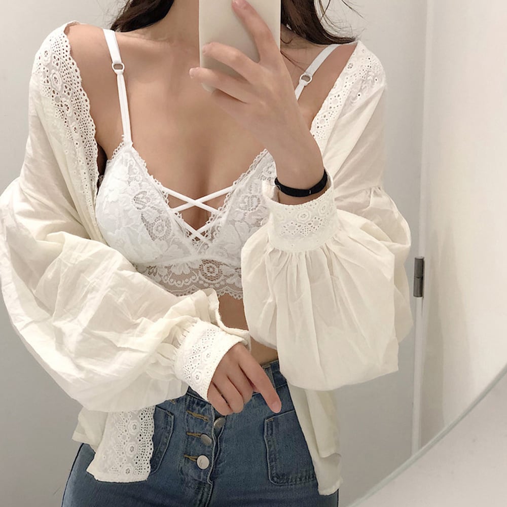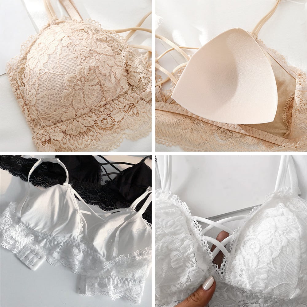 セクシーランジェリー マカロニコードブラ 小胸盛れる ブラトップ スカラップレース 花柄ナイトブラ 脇高 勝負下着女子