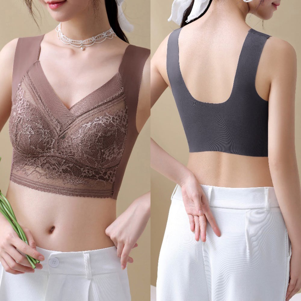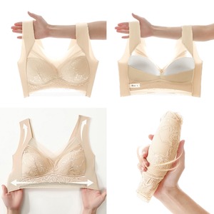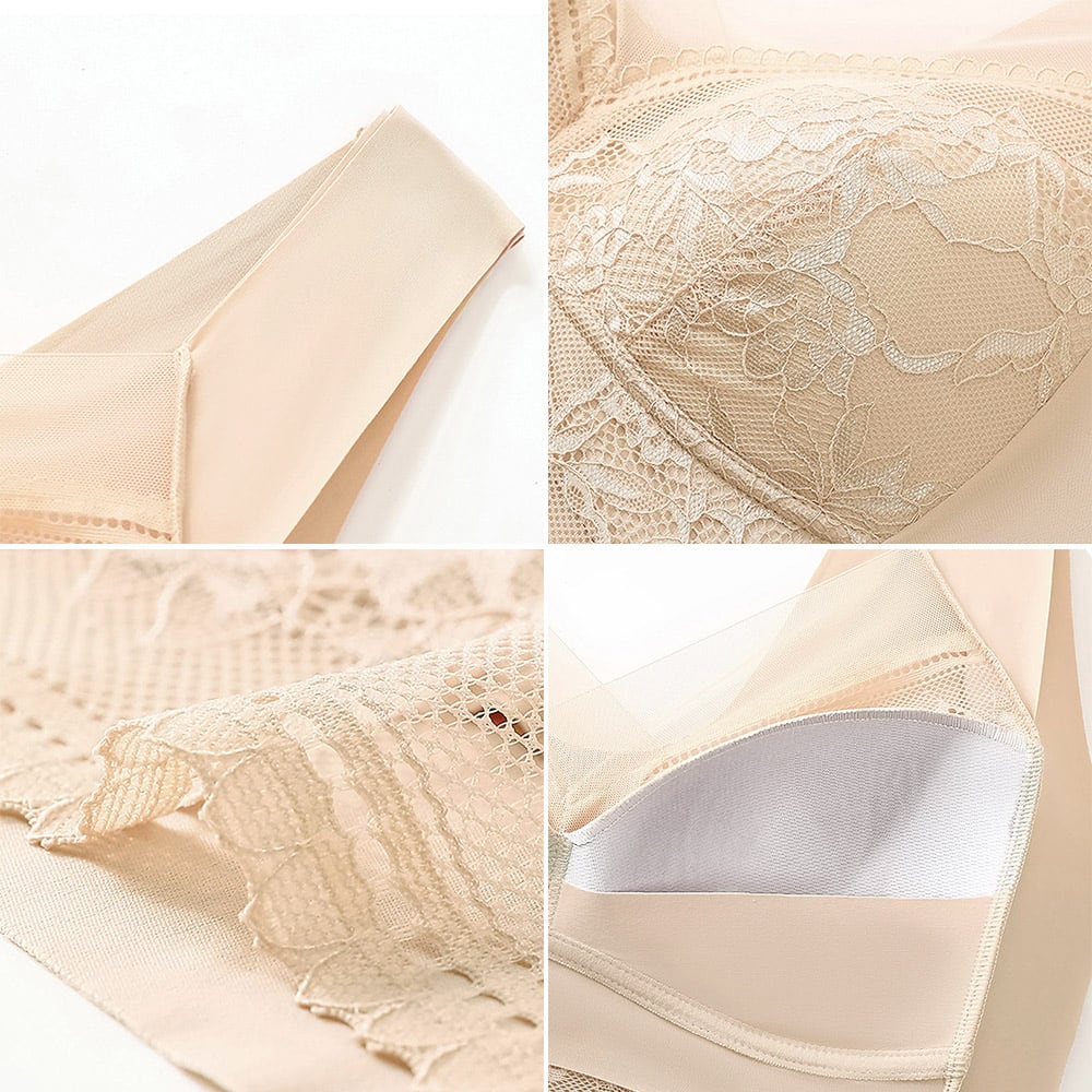 バストの横流れ防止と高さキープ、ノンワイヤーで寝ている間も快適な着け心地を徹底追求するレースブラジャー