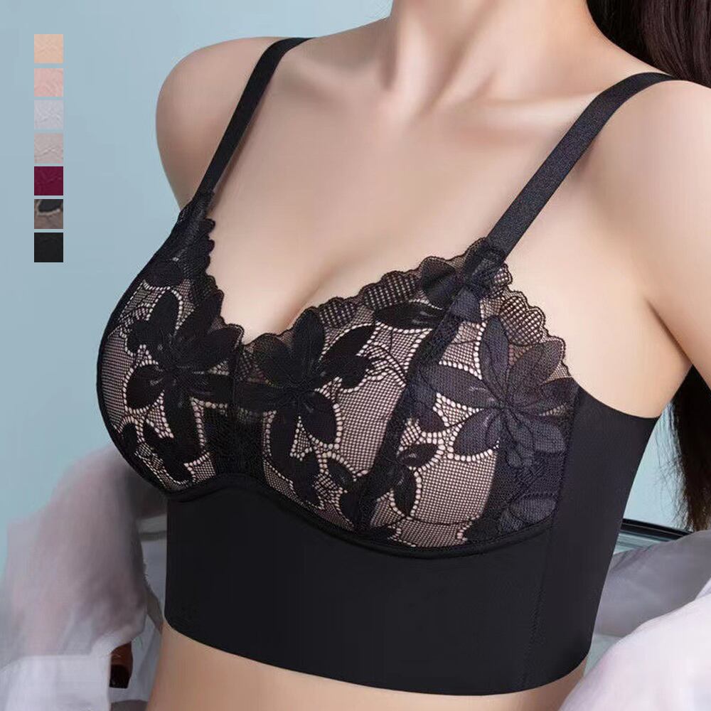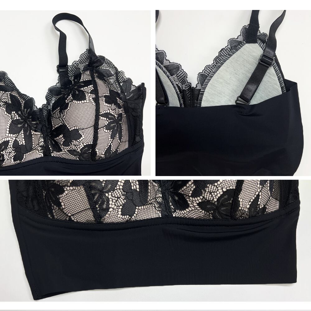 レースブラジャー 単品 女性 ワイヤレス ナイトブラ ブラトップ 盛れる Vネック ランジェリー 谷間 7色
