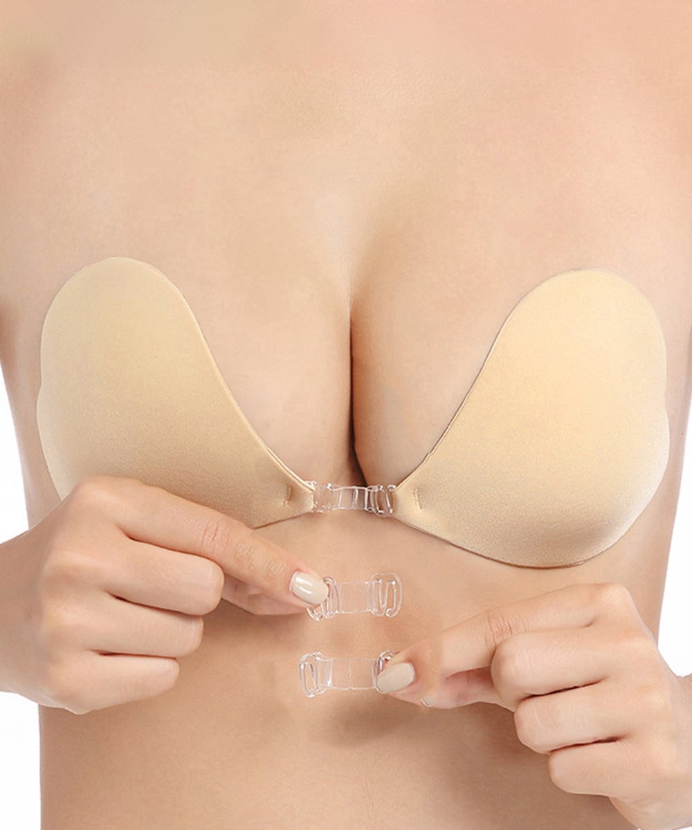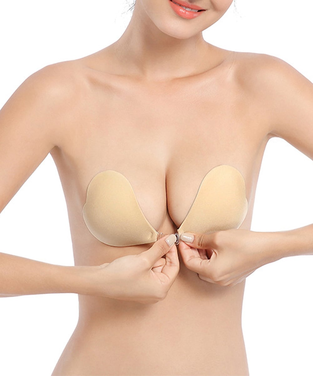 ハート型デザインが可愛らしい、ストラップレスのシリコンブラ