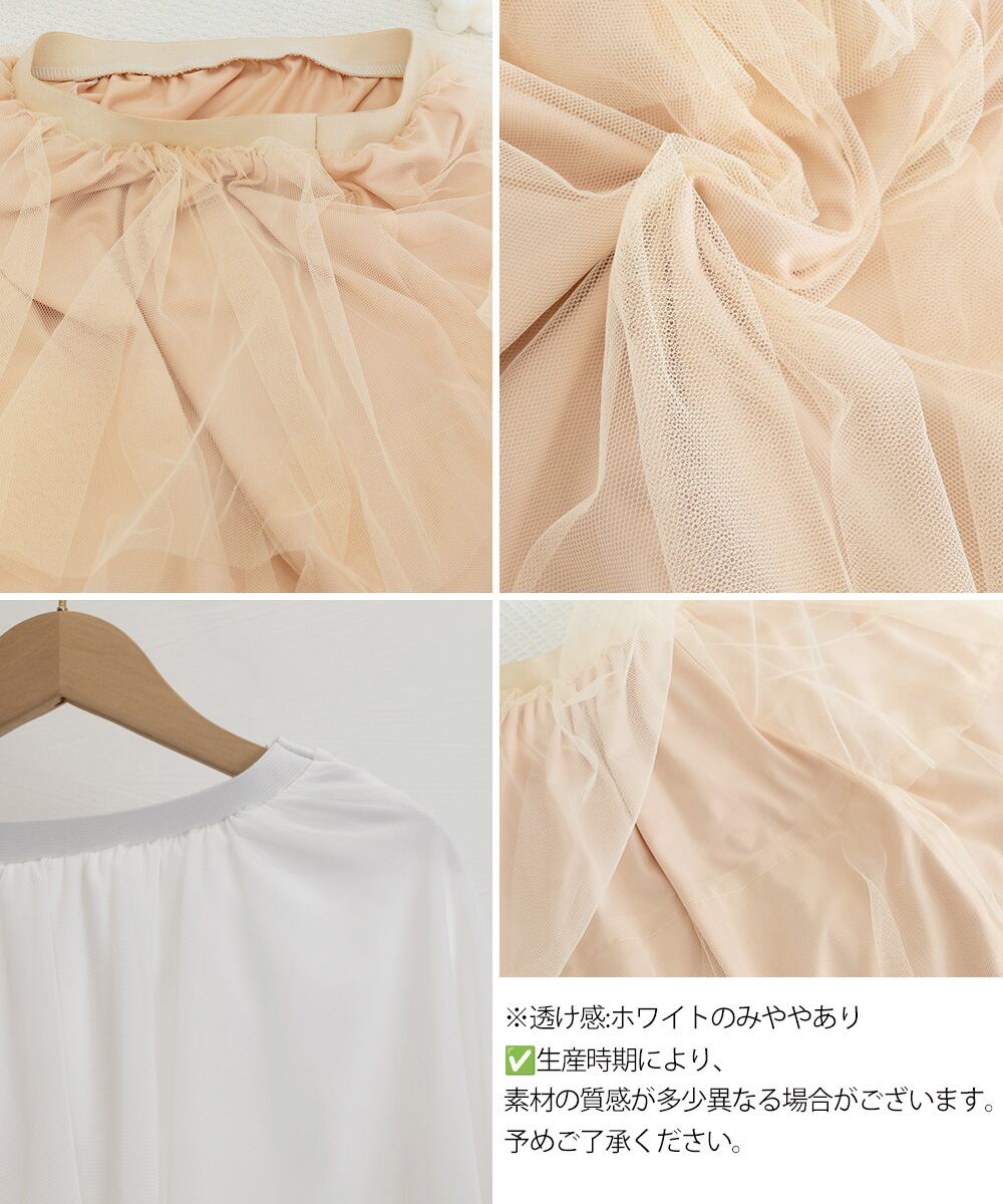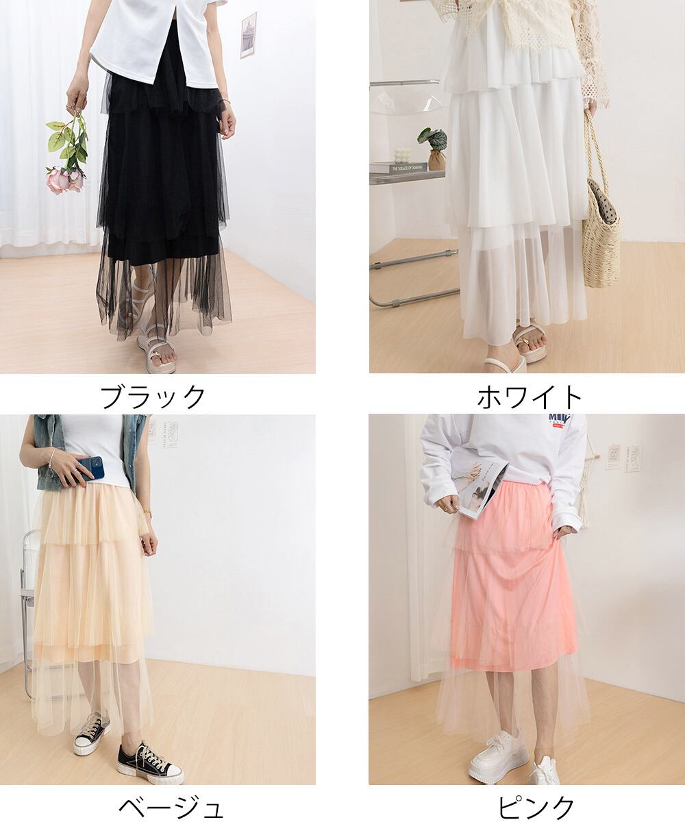 軽やかなチュール素材がエアリーなシルエットを演出するティアードスカート