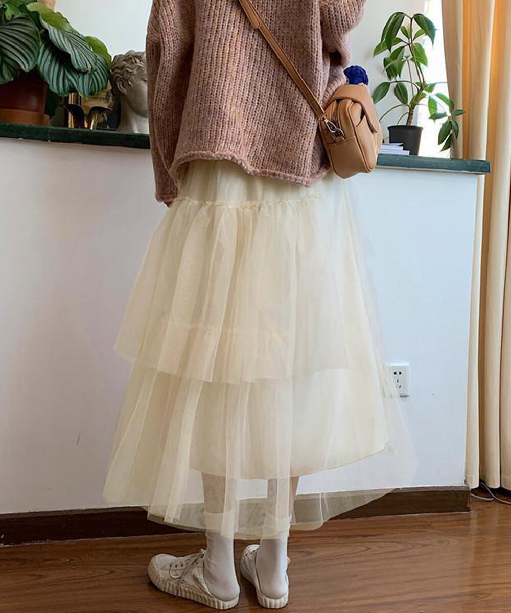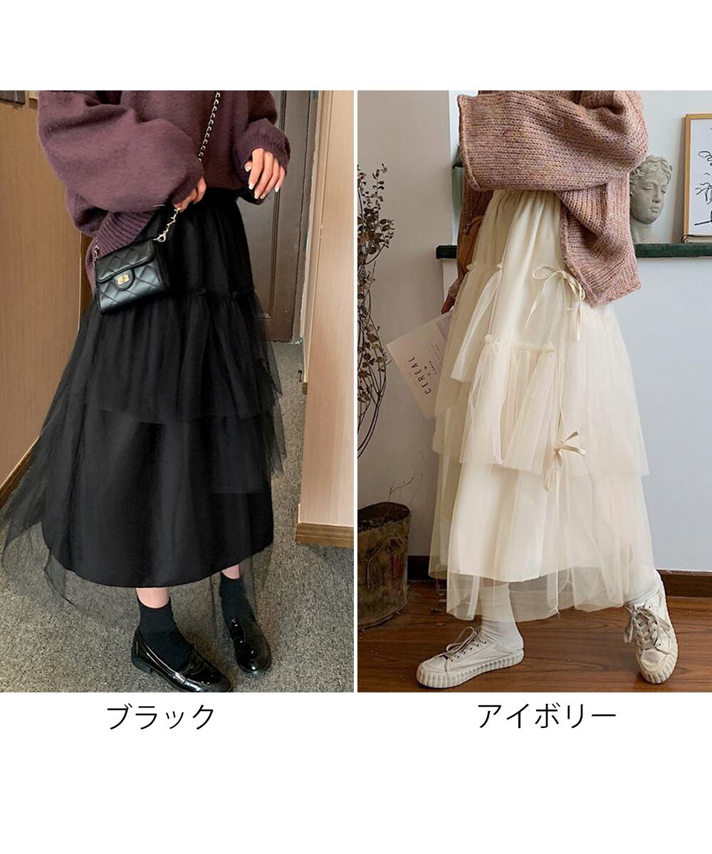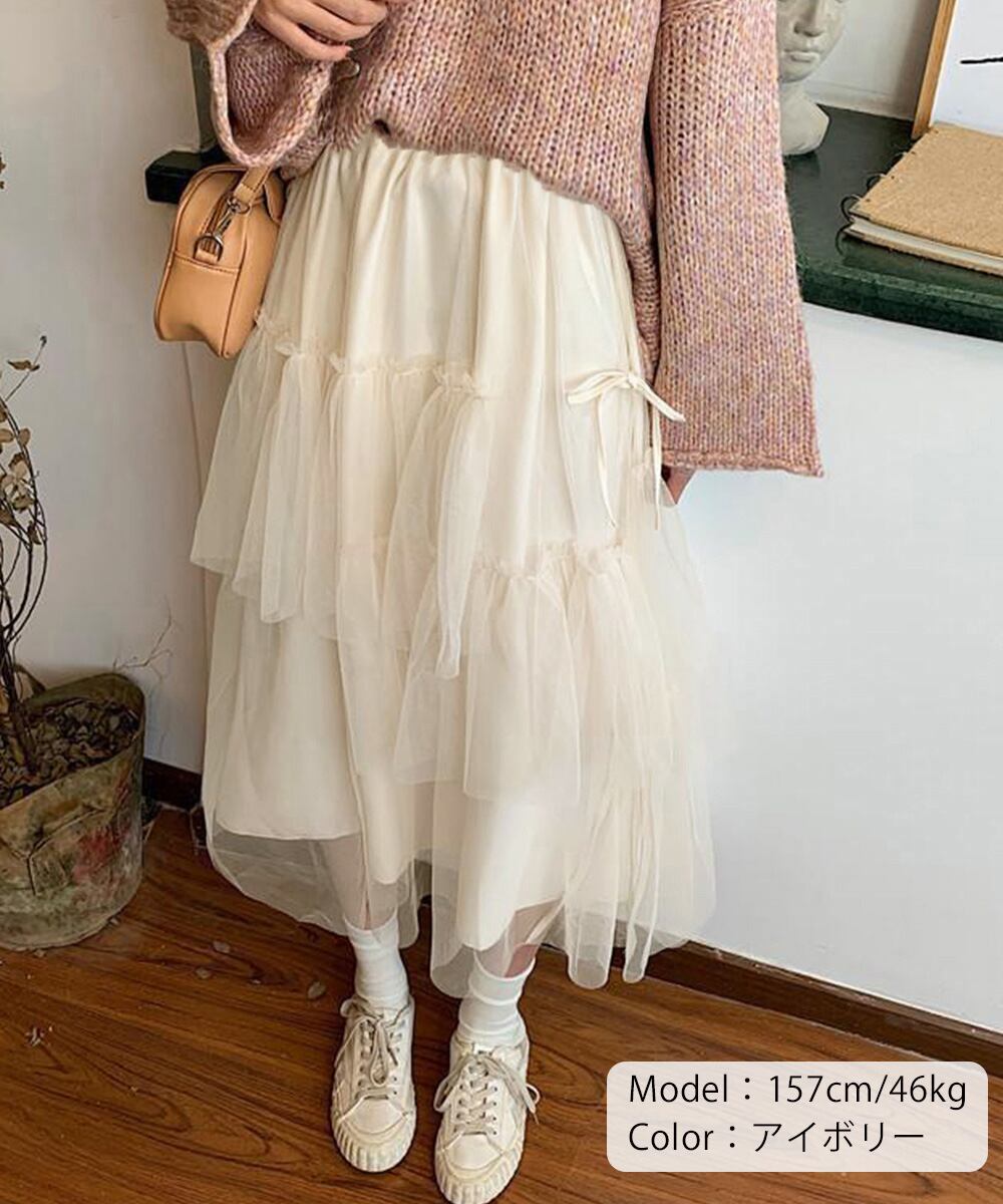 ティアードスカートロングチュールスカート 6HMEIX-002
