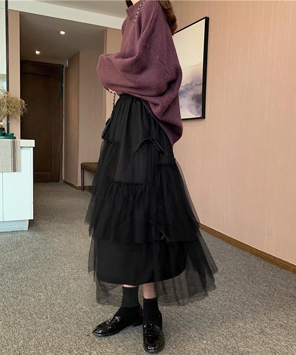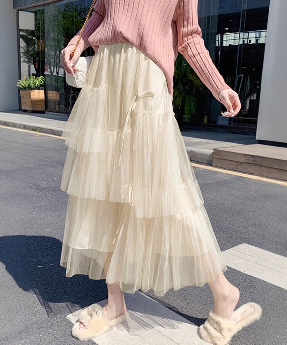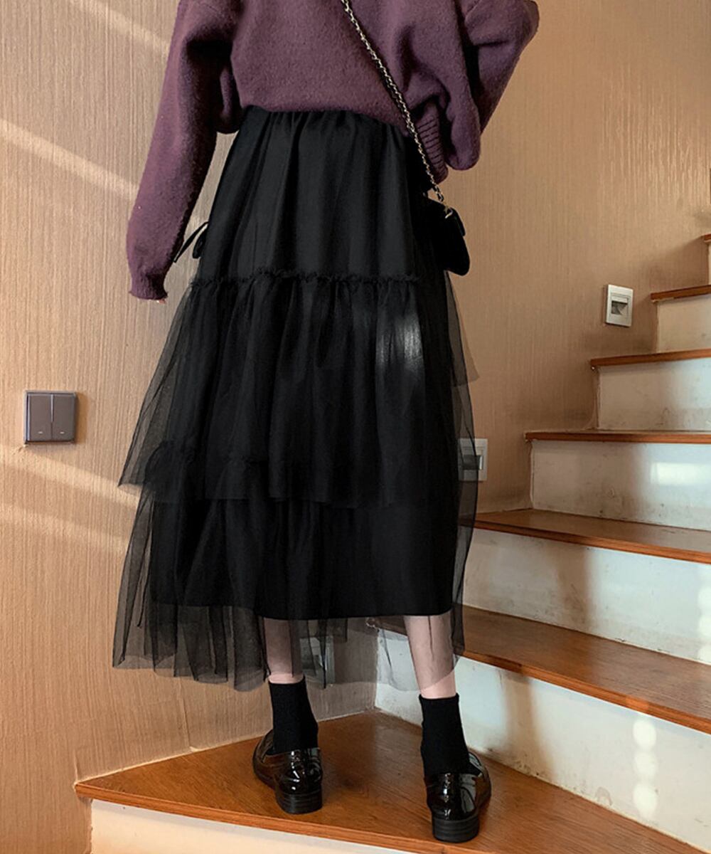ティアードスカートロングチュールスカート 6HMEIX-002