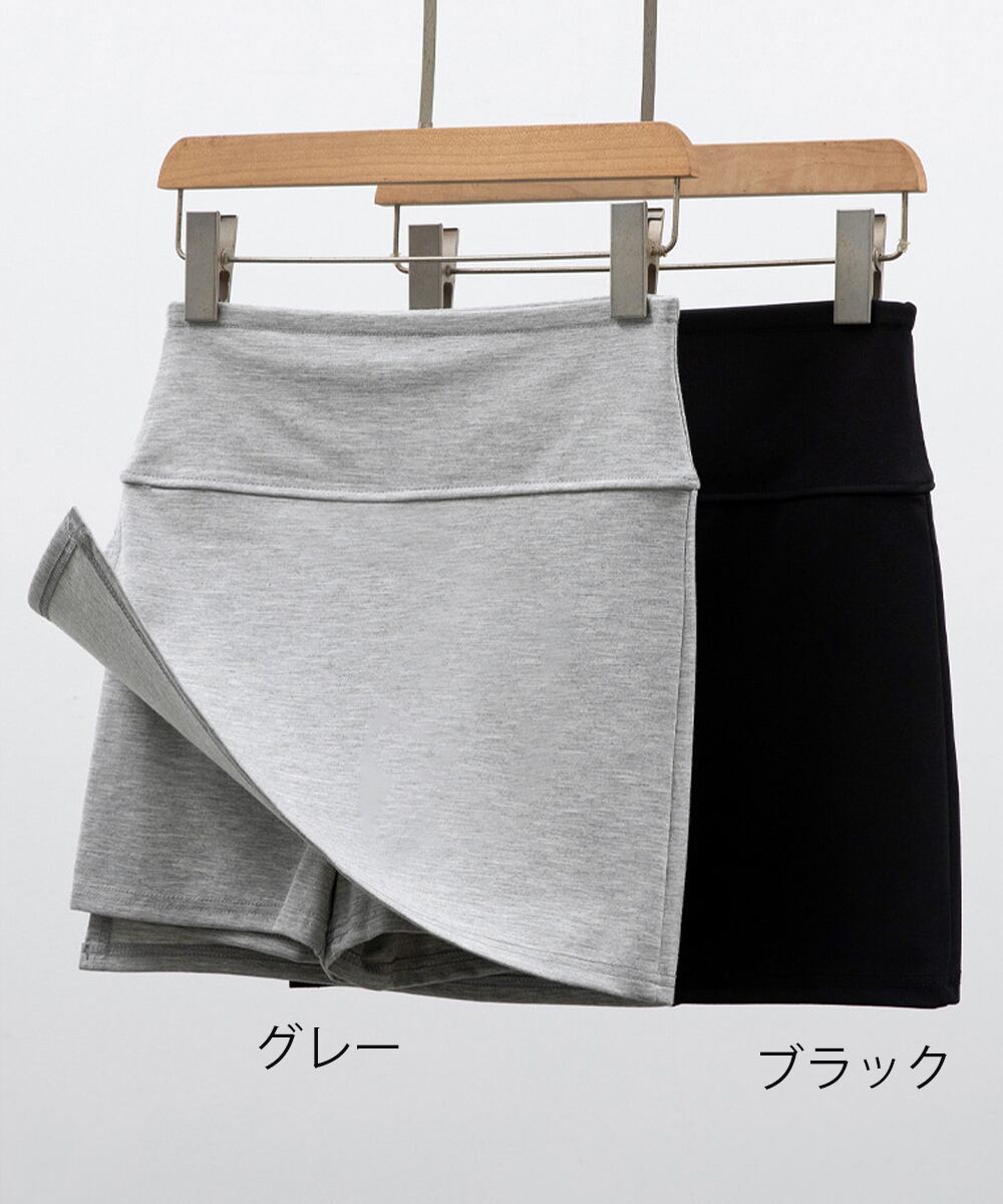ショート丈ボトムス セクシースカパン黒 細見えスカート無地