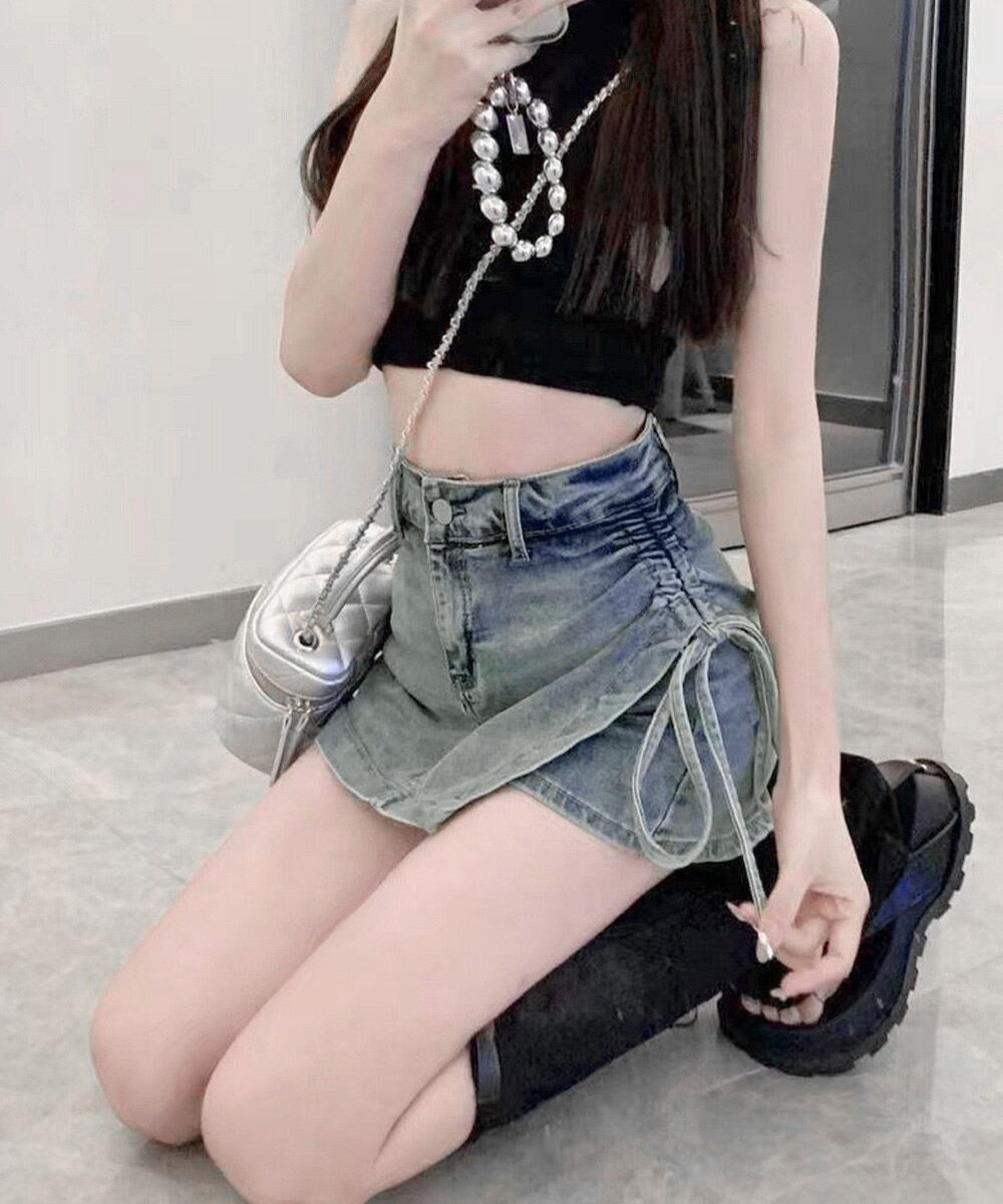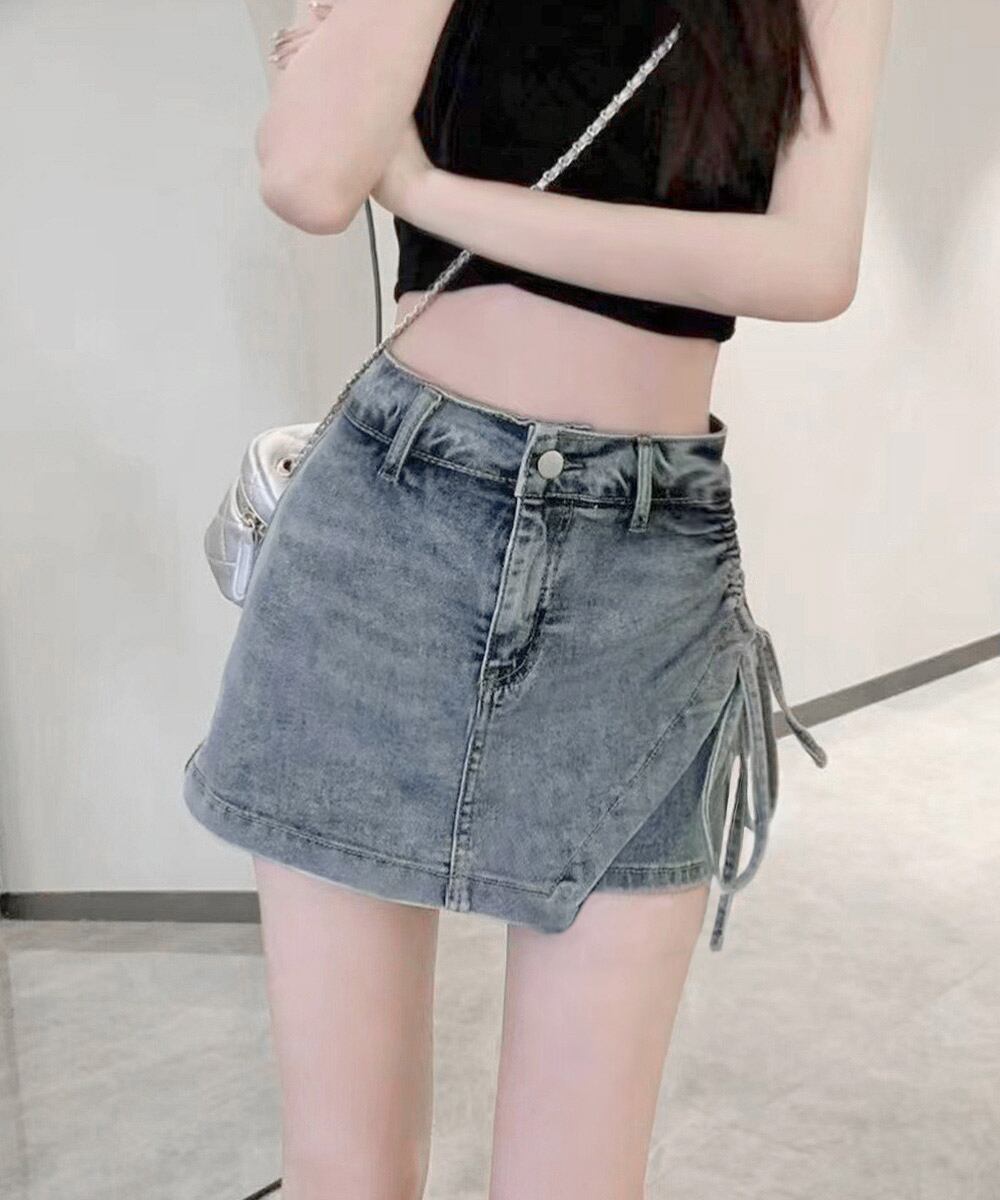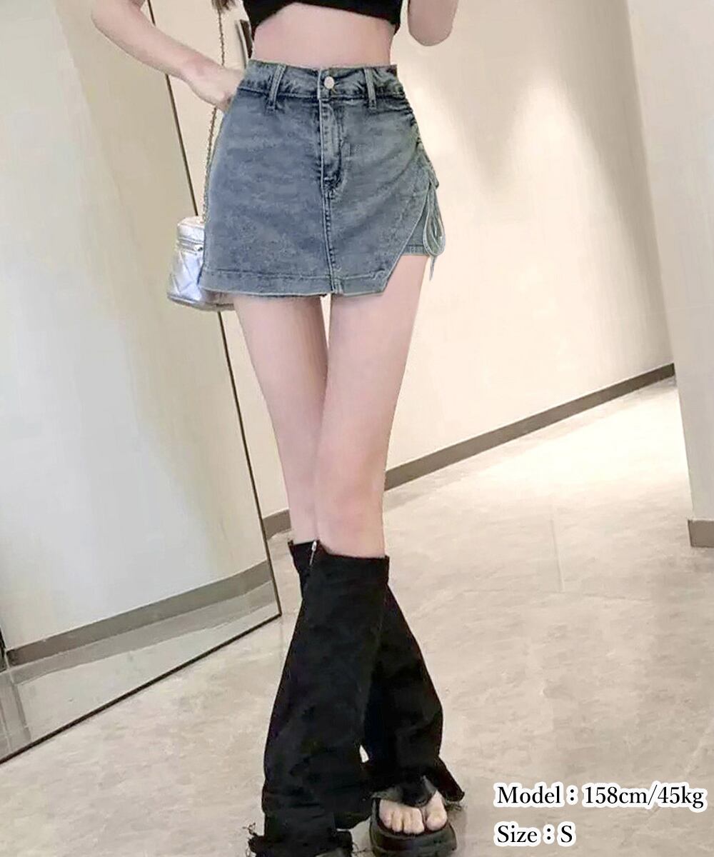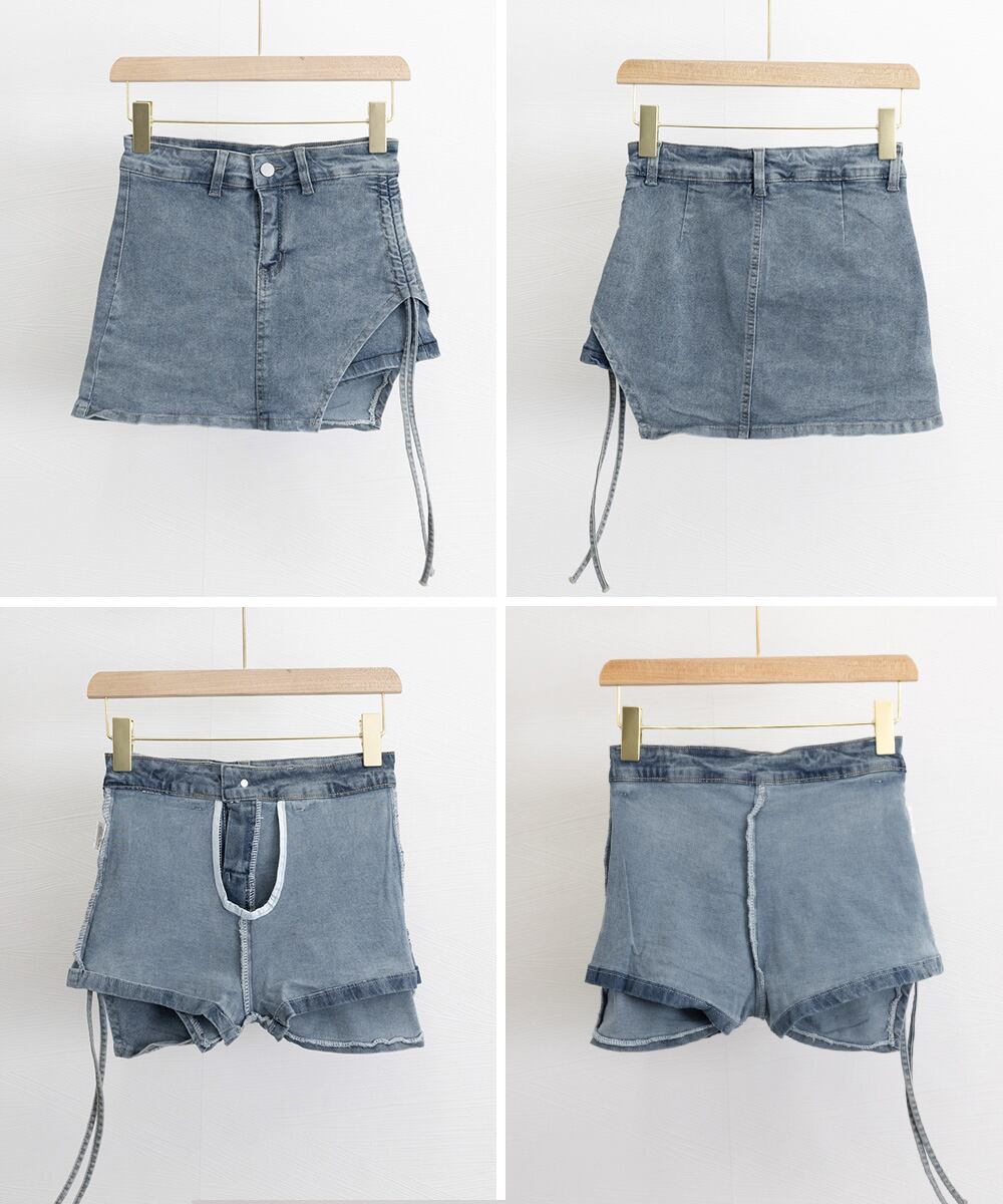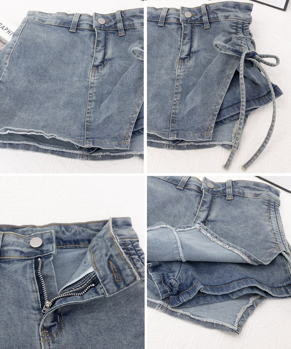 サイドリボンデニムショートパンツスカート 80CHUNTAI-001