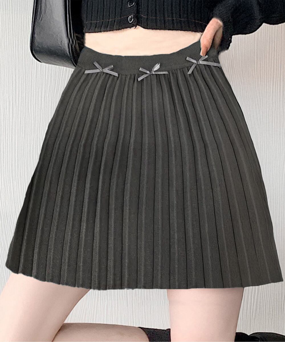 ウエスト部分に小さなリボンが付いたミニプリーツスカート