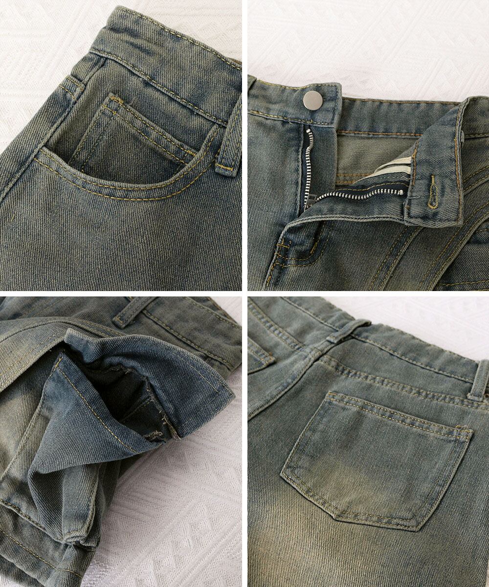 ハイウエスト ウォッシュデニム 美脚脚長 短パン ジーンズ お洒落 キュロットパンツレディース 台形ミニスカパン 細見え