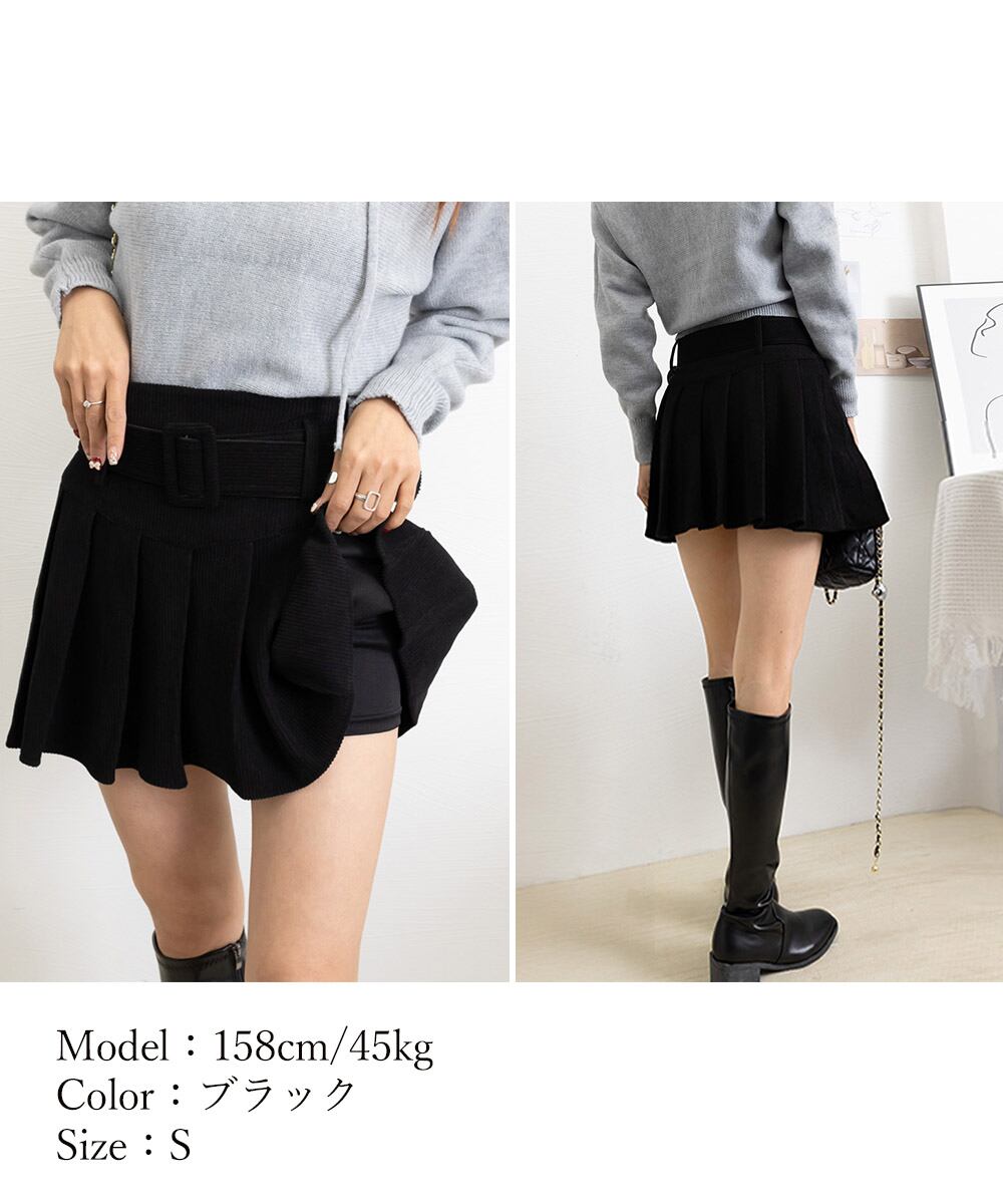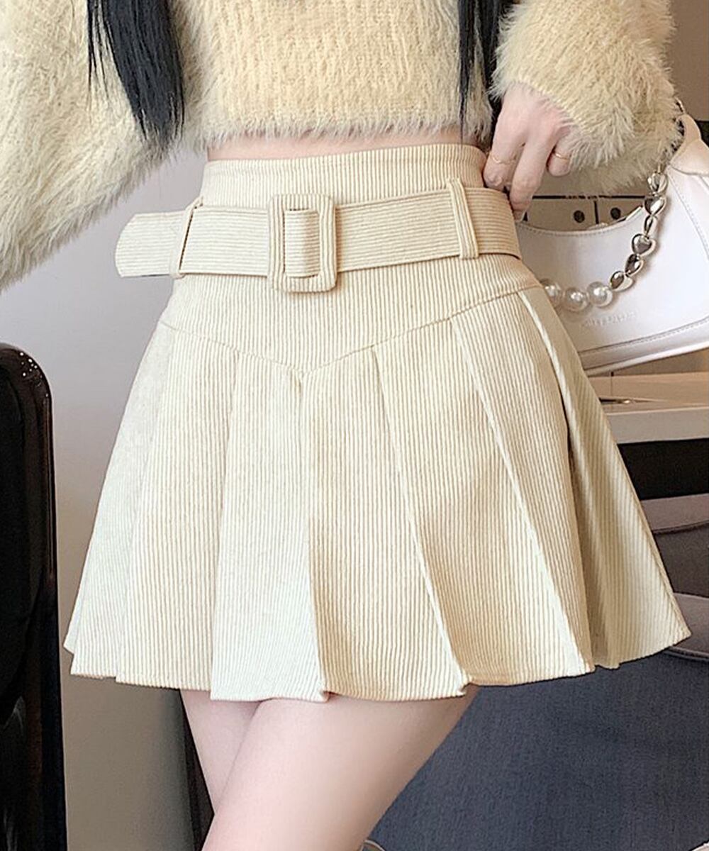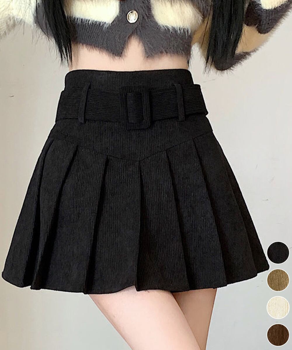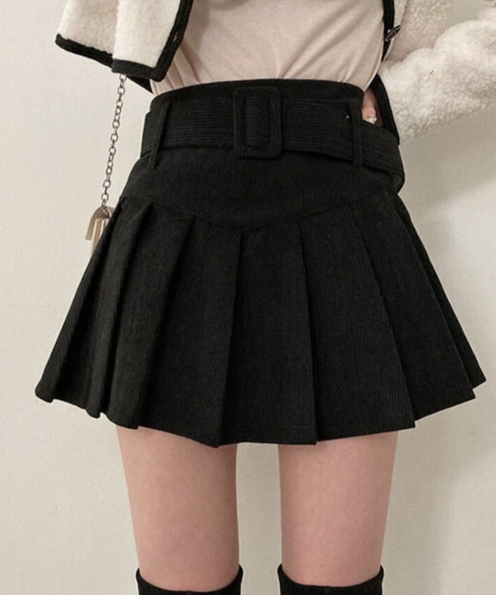 プリーツスカートコーデュロイミニスカート 90XIAOCAI-001