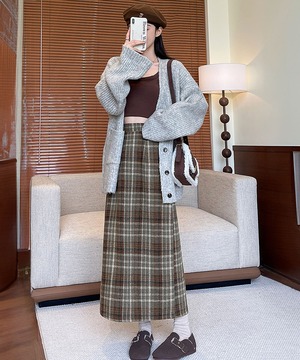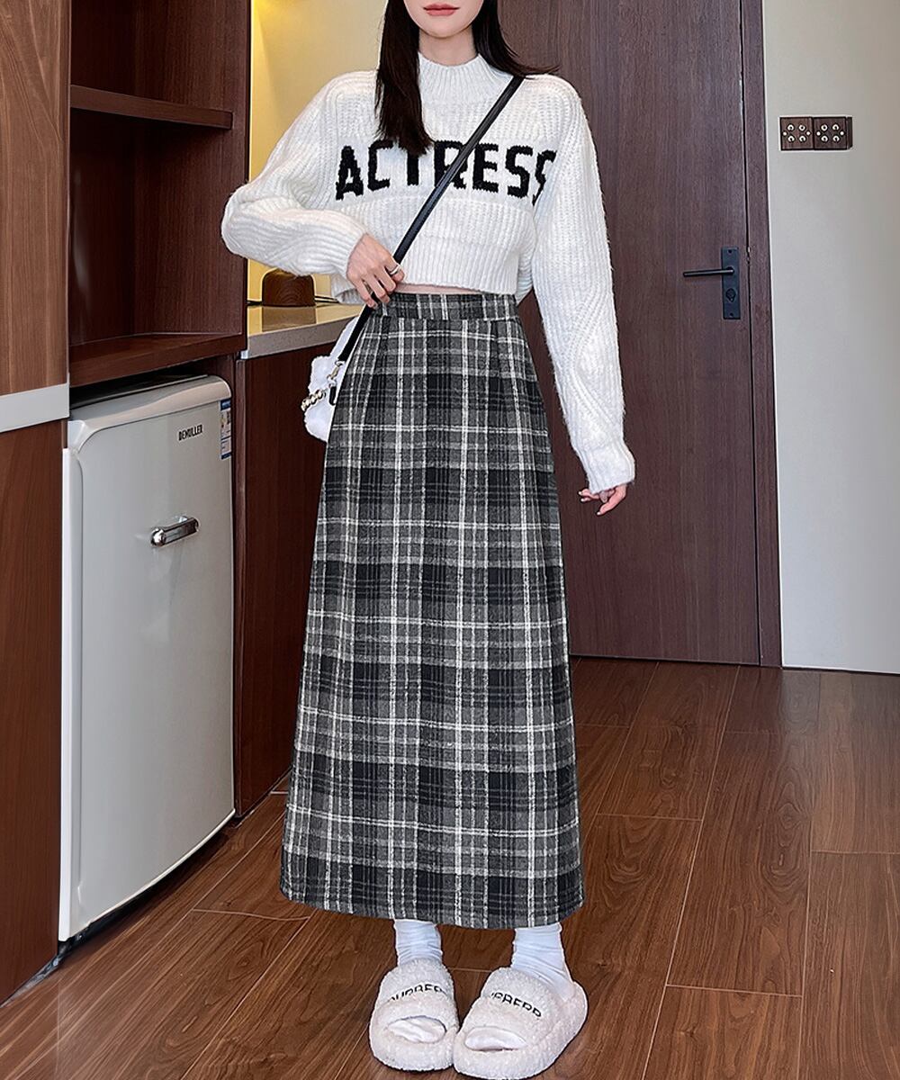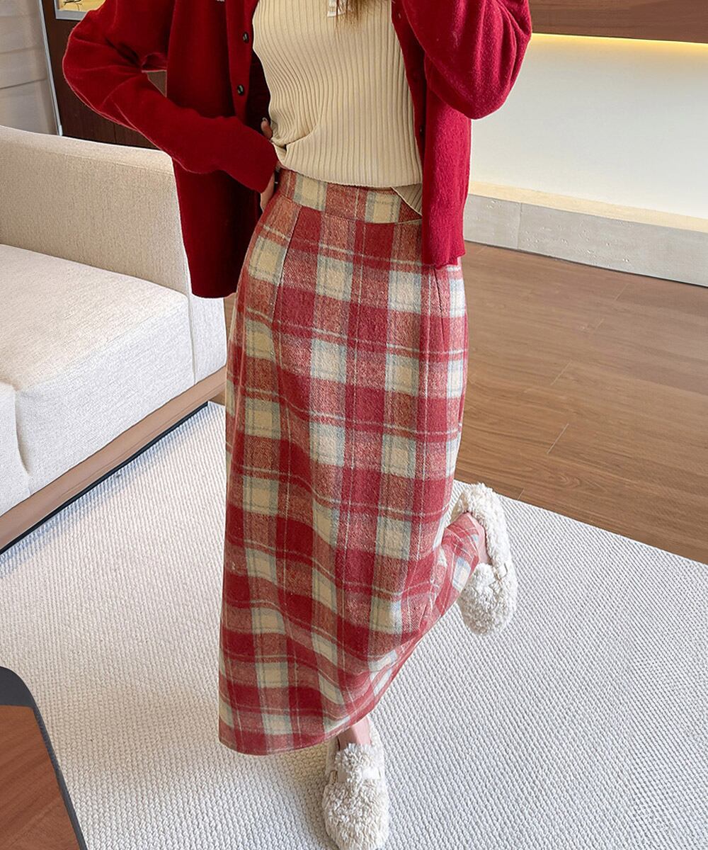 クラシカルなチェック柄が魅力のタイトロングスカート。
