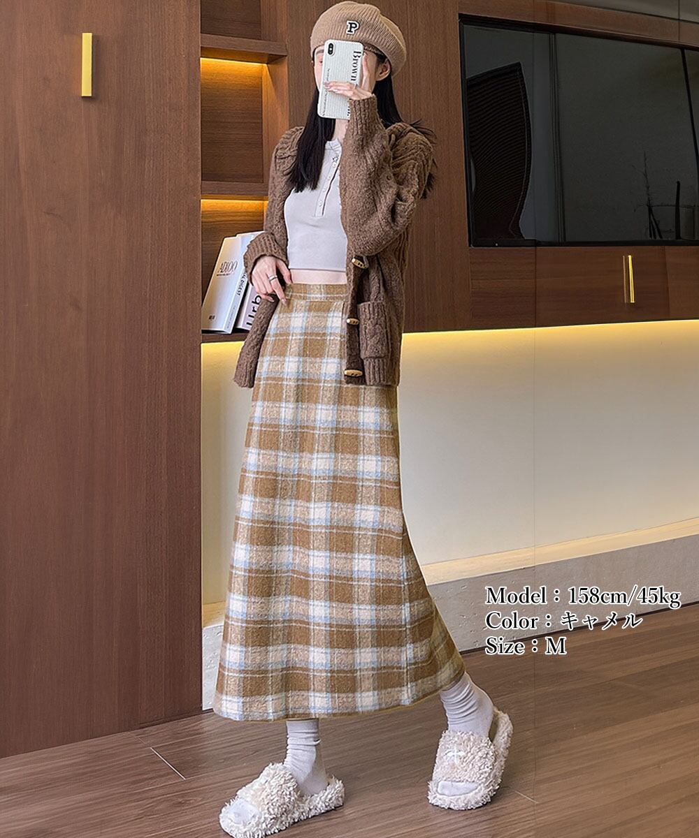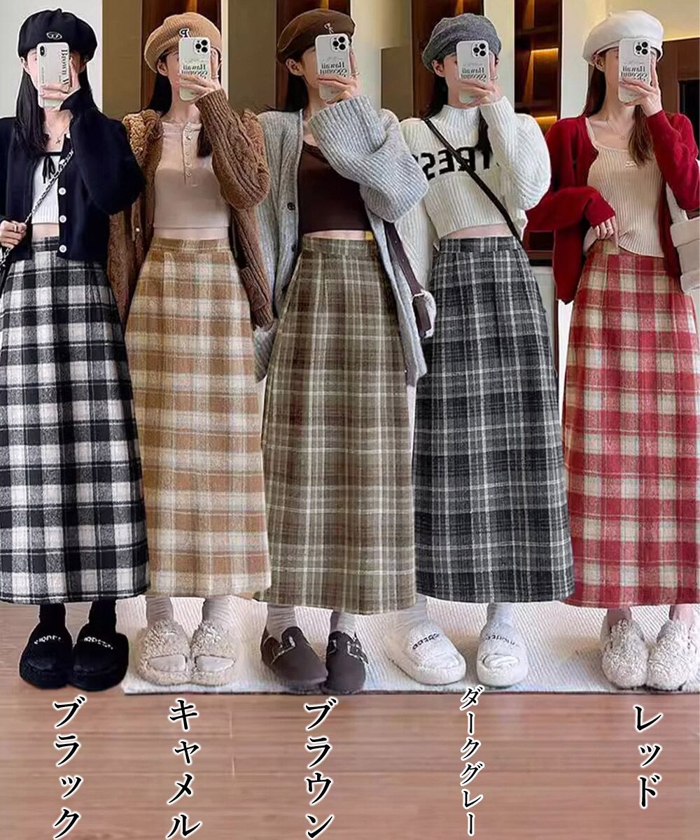 レトロウールライクスカート レディース ハイウエストAラインスカート ストレートロングスカート 秋冬ミモレスカート韓国風