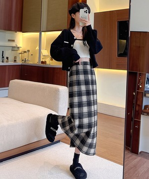 チェック柄タイトスカート バックスリット 80XCAI-001