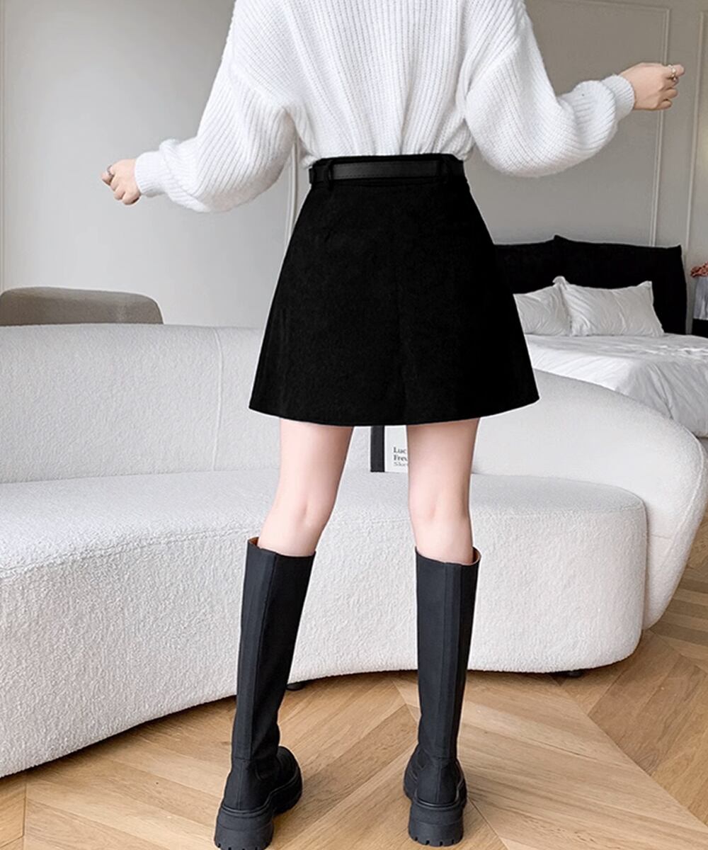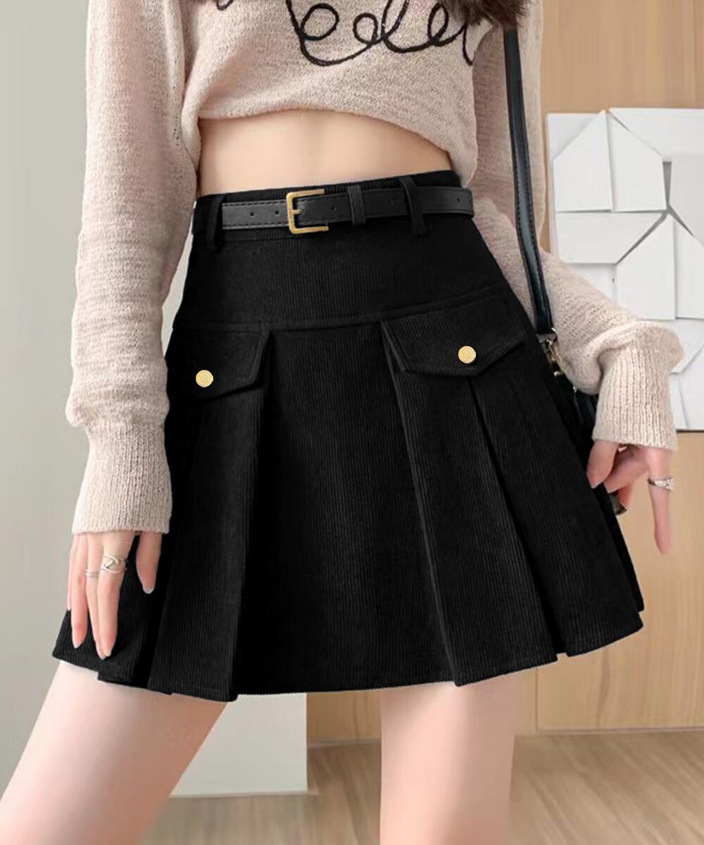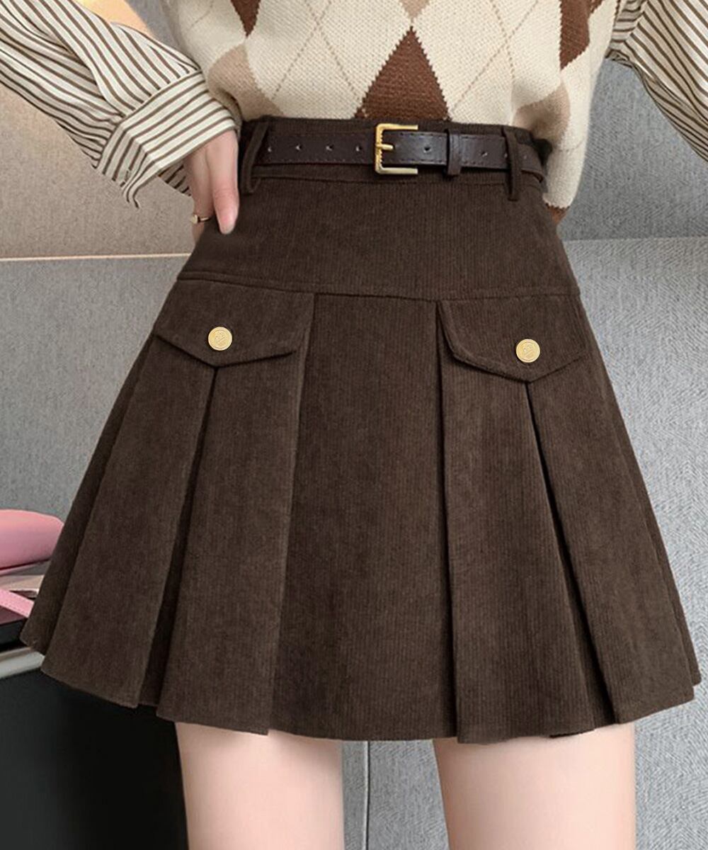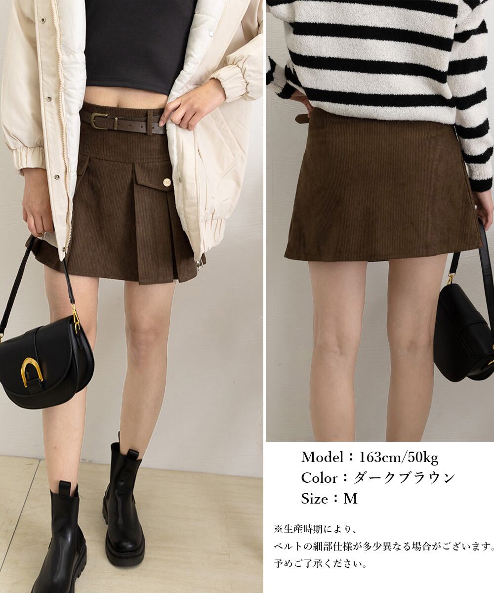 コーデュロイプリーツスカート ベルト付き 24SKT-001