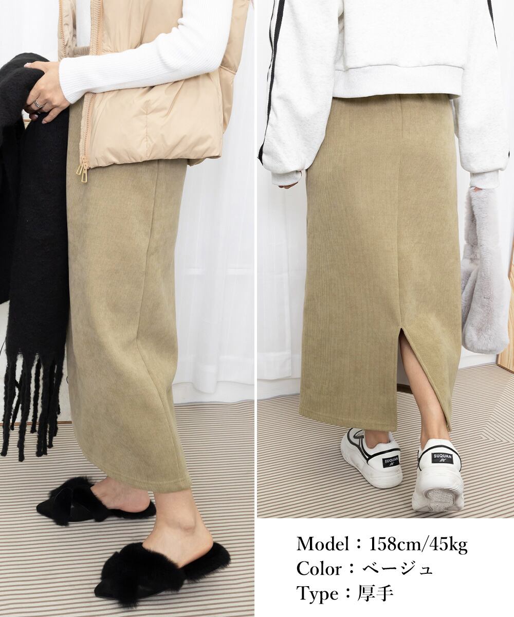 冬でもポカポカ、暖かい裏起毛とノーマル仕様の2タイプから選べるロングスカート。