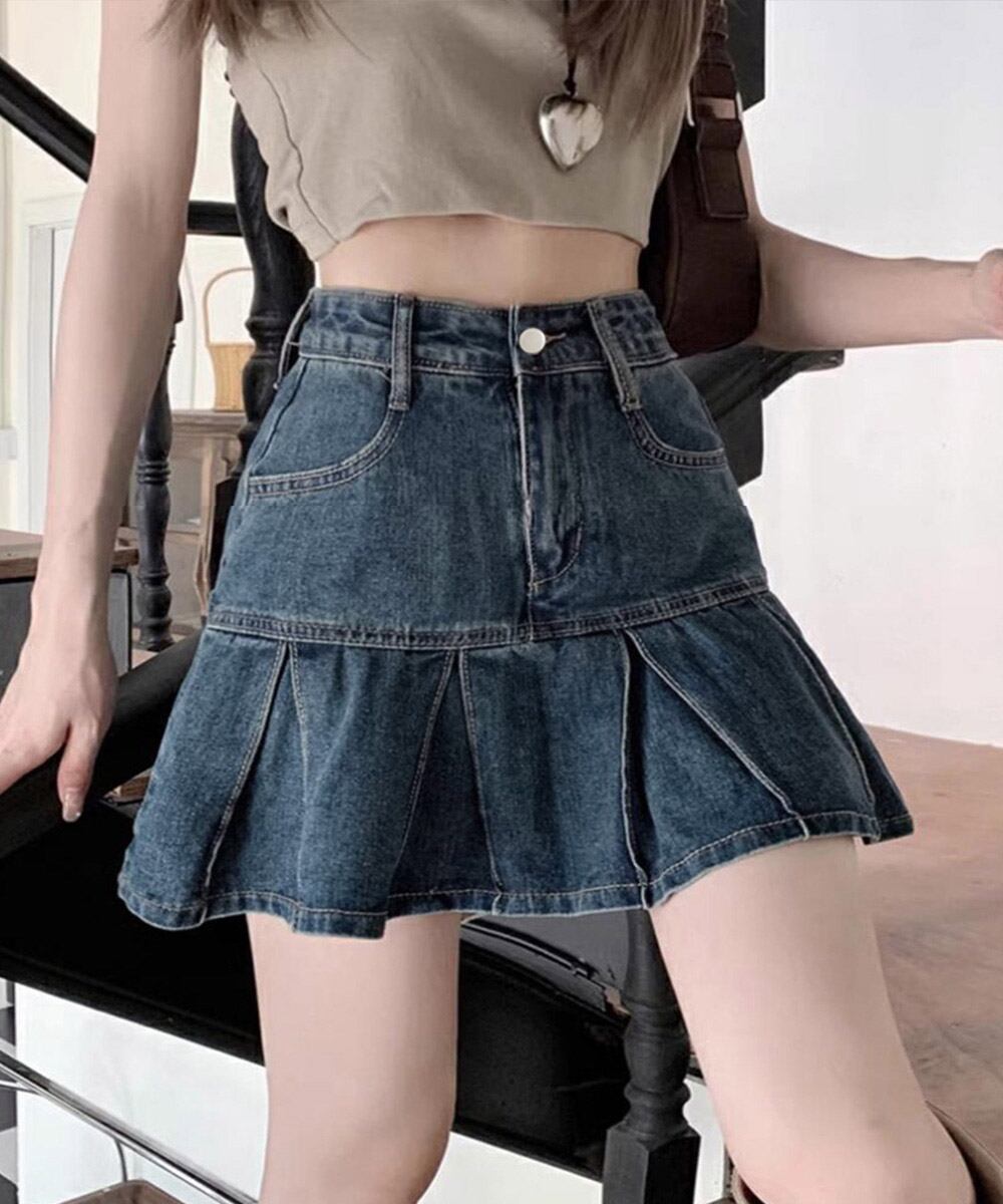 プリーツデニムスカートミニスカート韓国風 21QUNZI-006