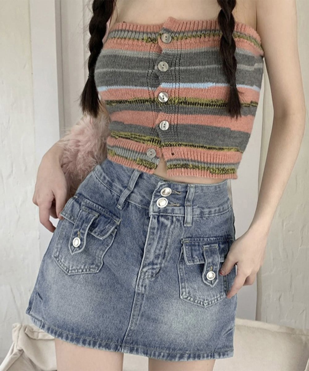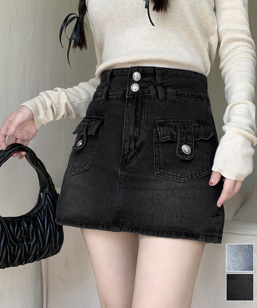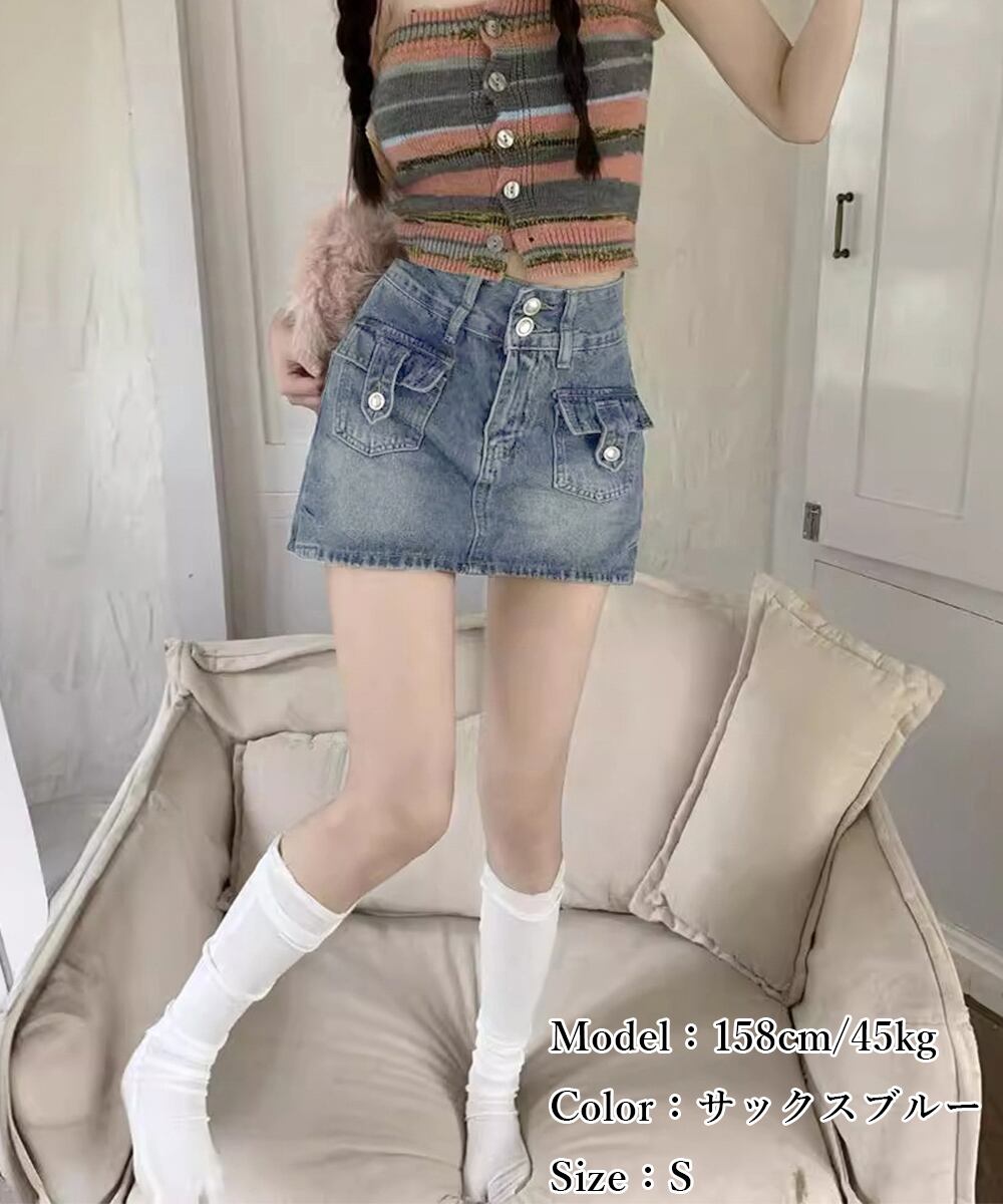 カーゴミニスカート 細見え台形スカート 着やせデニムレトロ