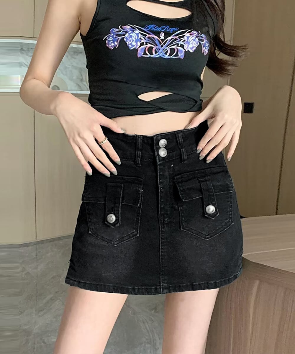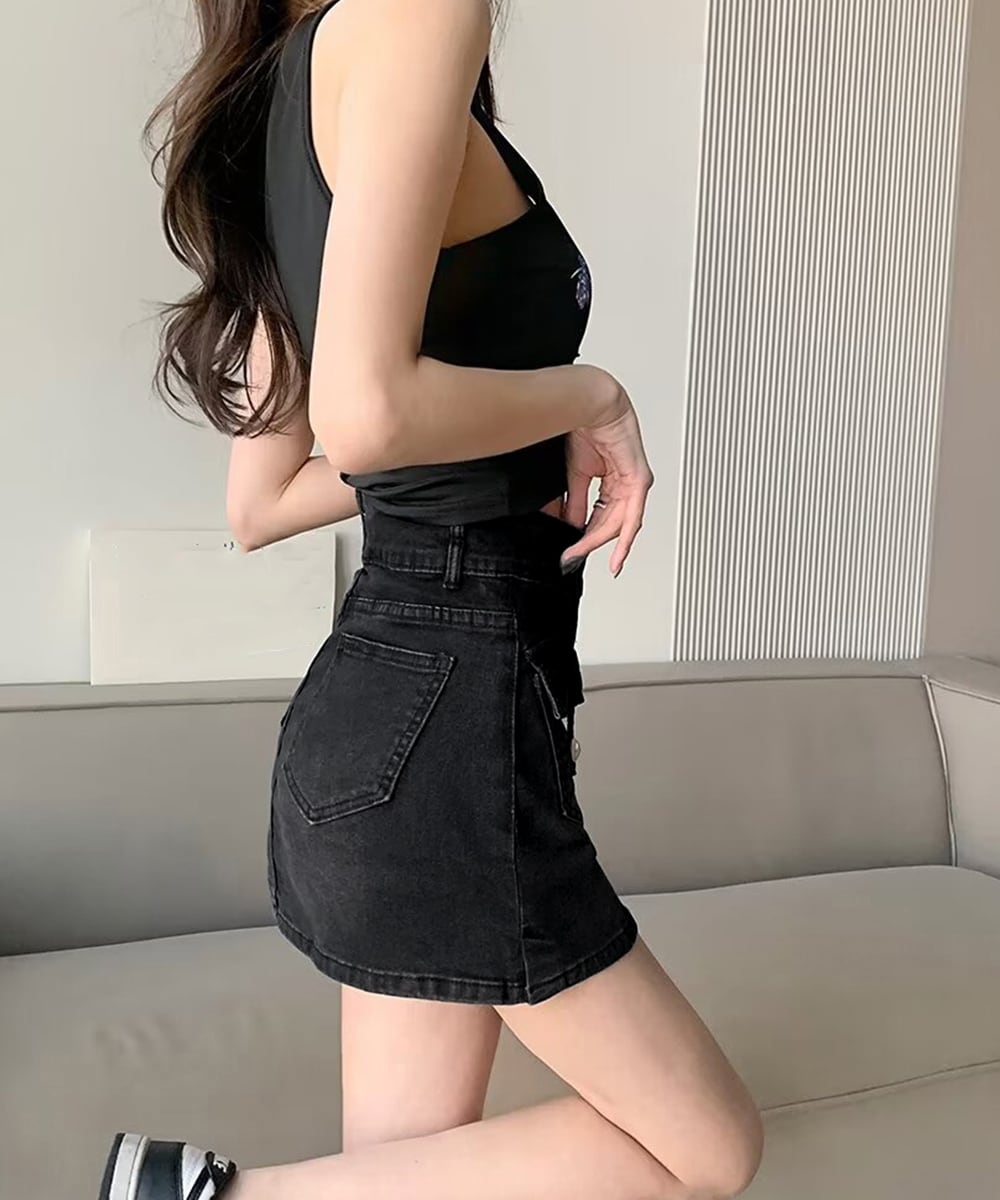 キュロットデニムスカート ハイウエスト 6DAKUANG-001