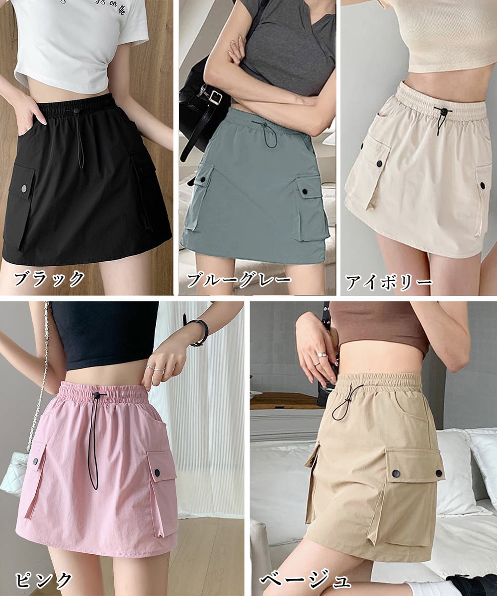 ワークスカート レディース インナーパンツ付き カーゴミニスカート Aライン おしゃれ タイトスカート 韓国 カジュアル