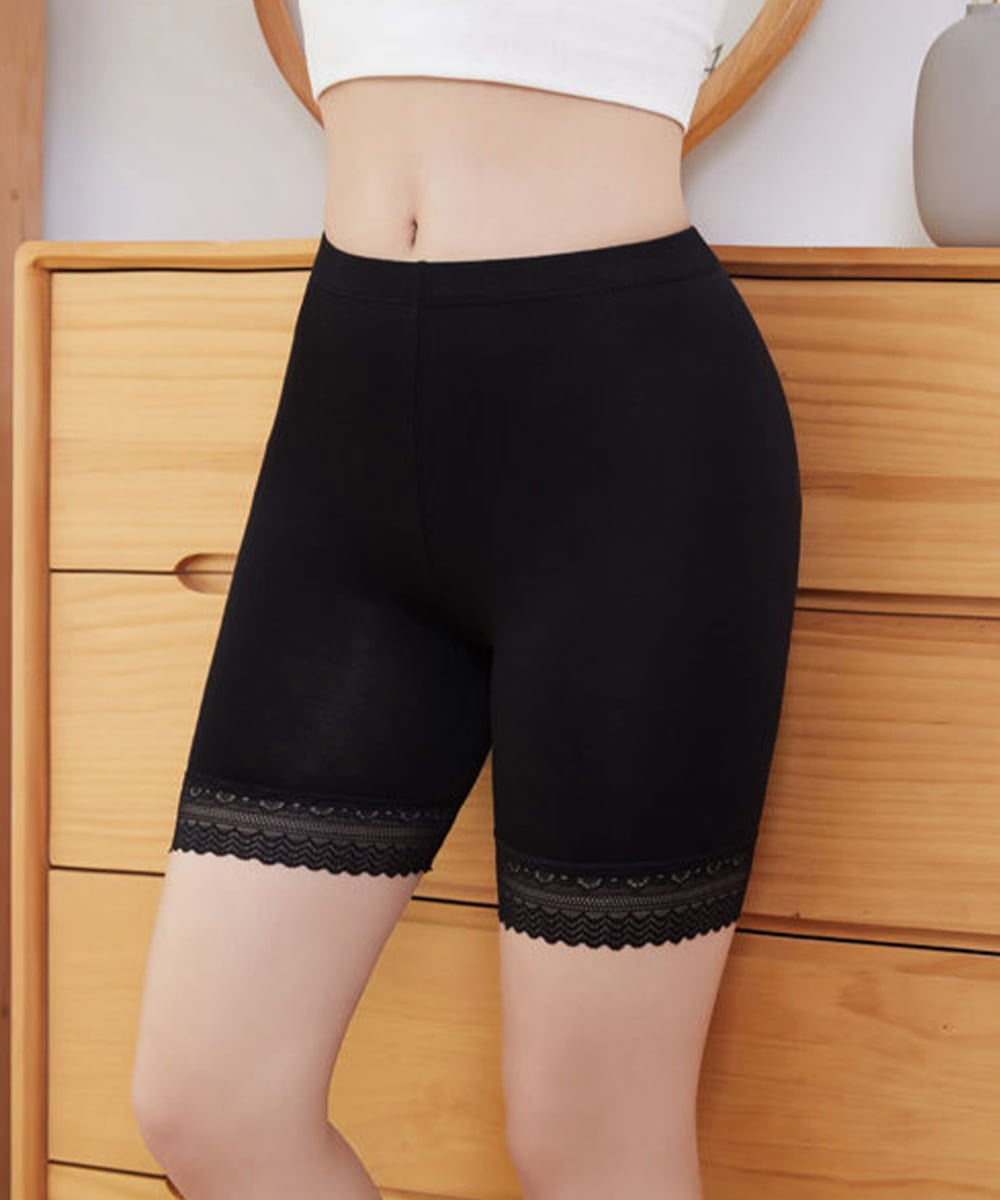 スカートやワンピースのインナーとして着用すれば、動きやすく安心感のあるスタイルが完成。