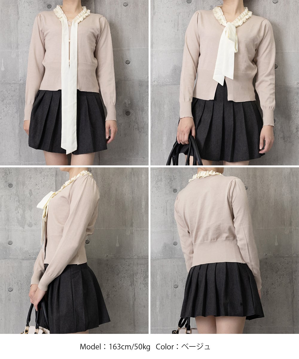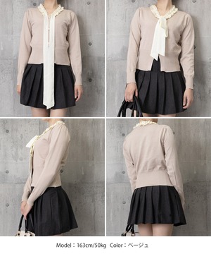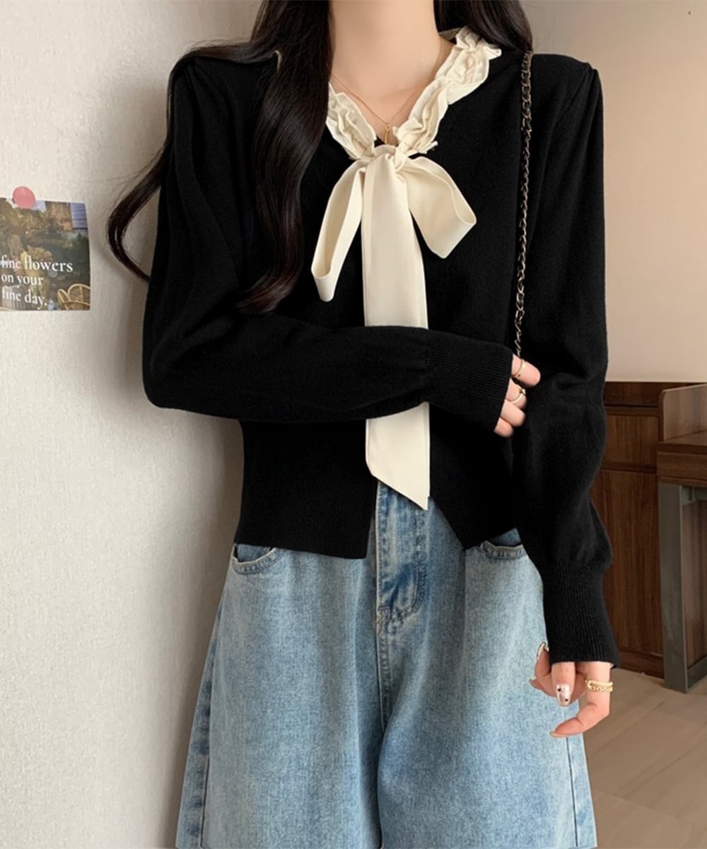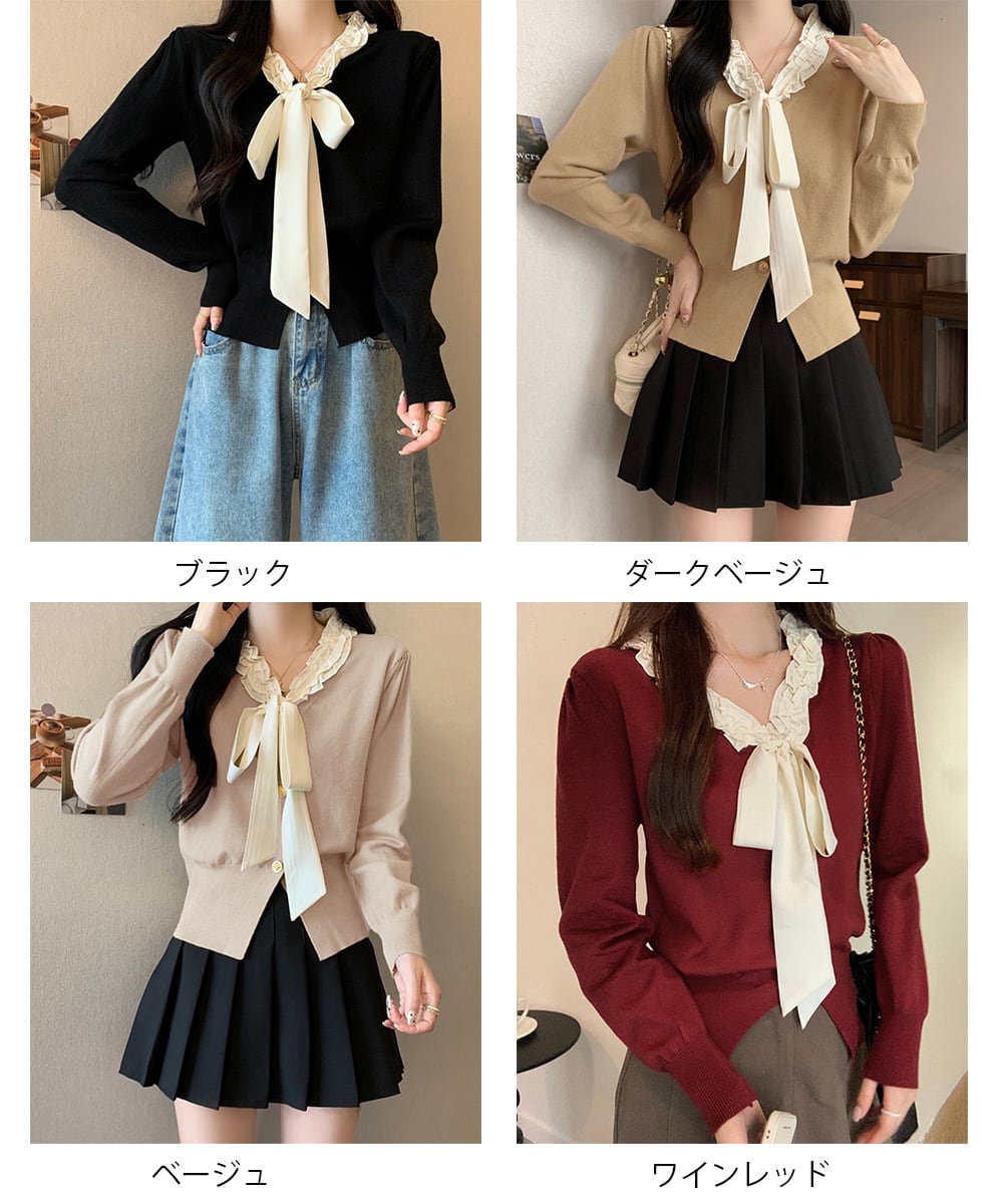 ボウタイニットトップス フリル襟 ニット 24TPS-063