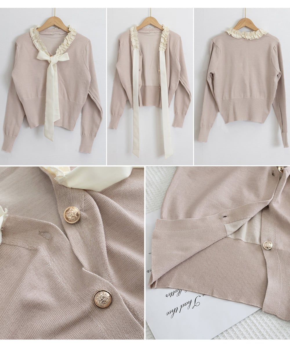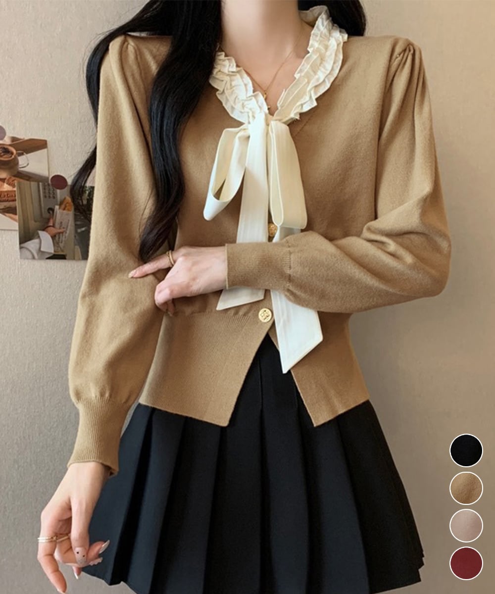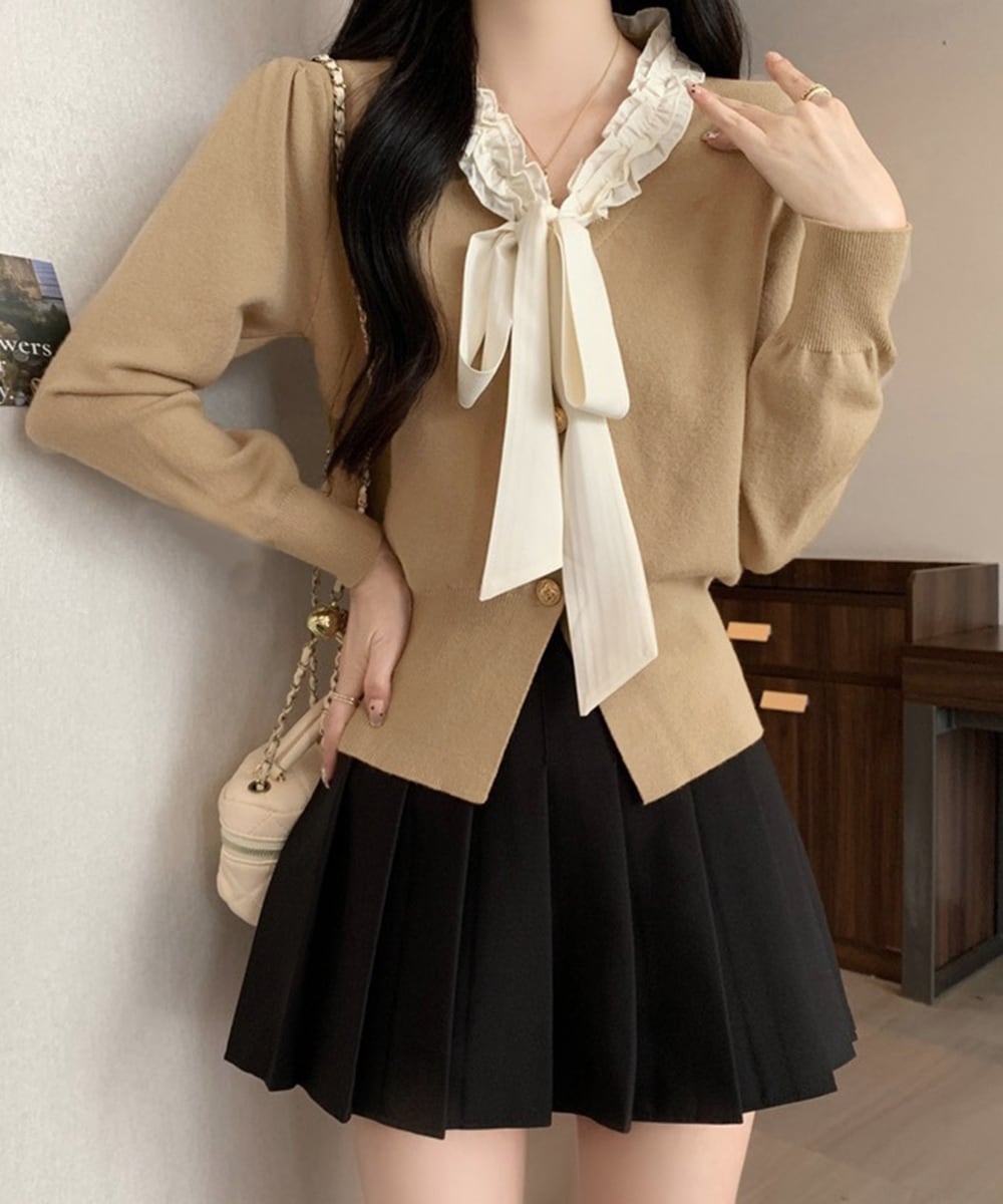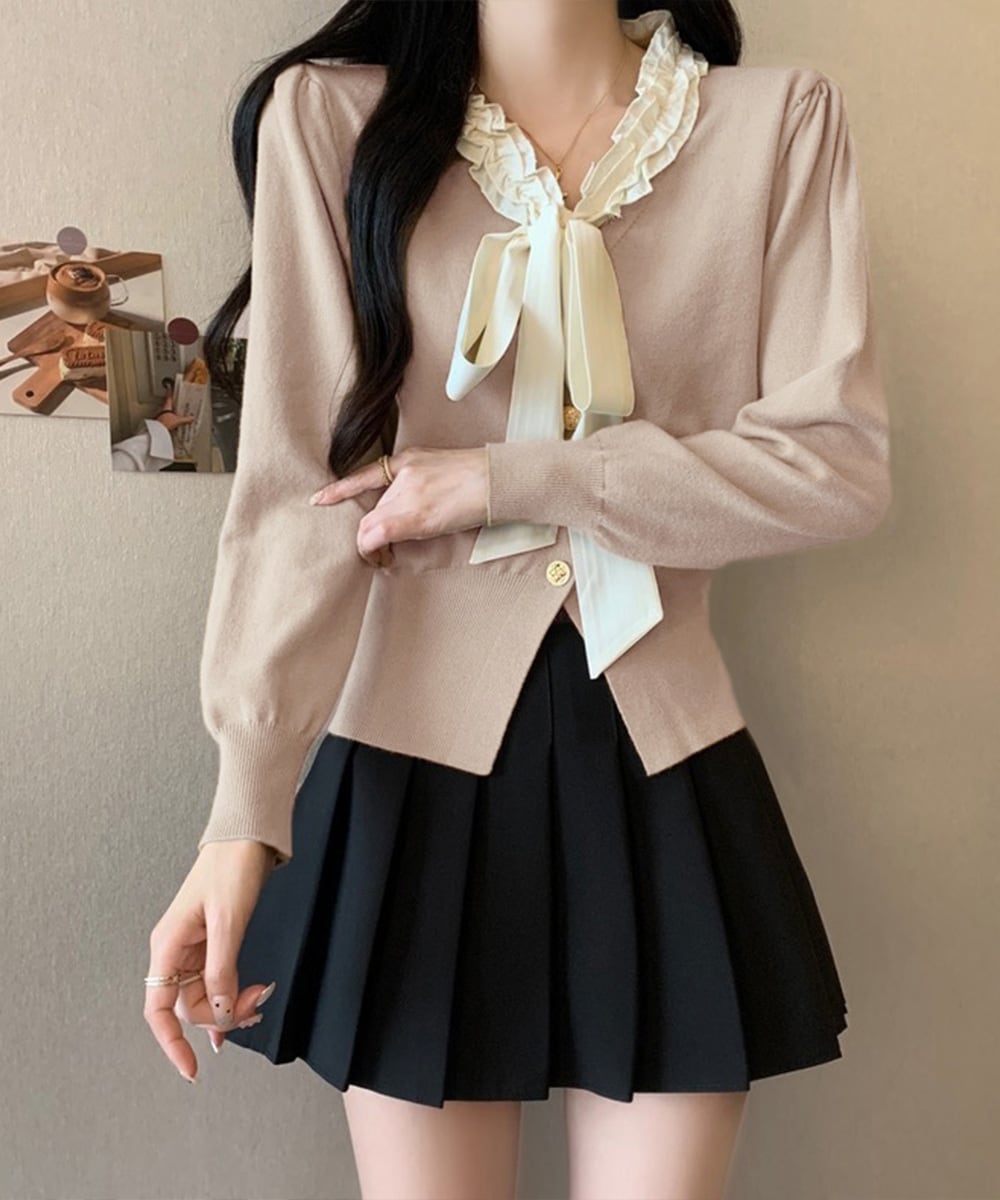 ボウタイニットトップス フリル襟 ニット 24TPS-063