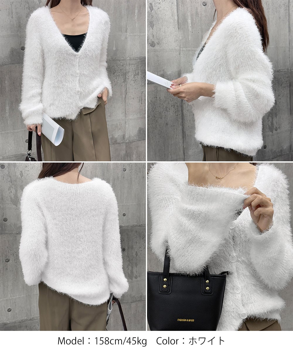 シャギーニットカーディガン モヘアタッチ 90CHENXINI-026