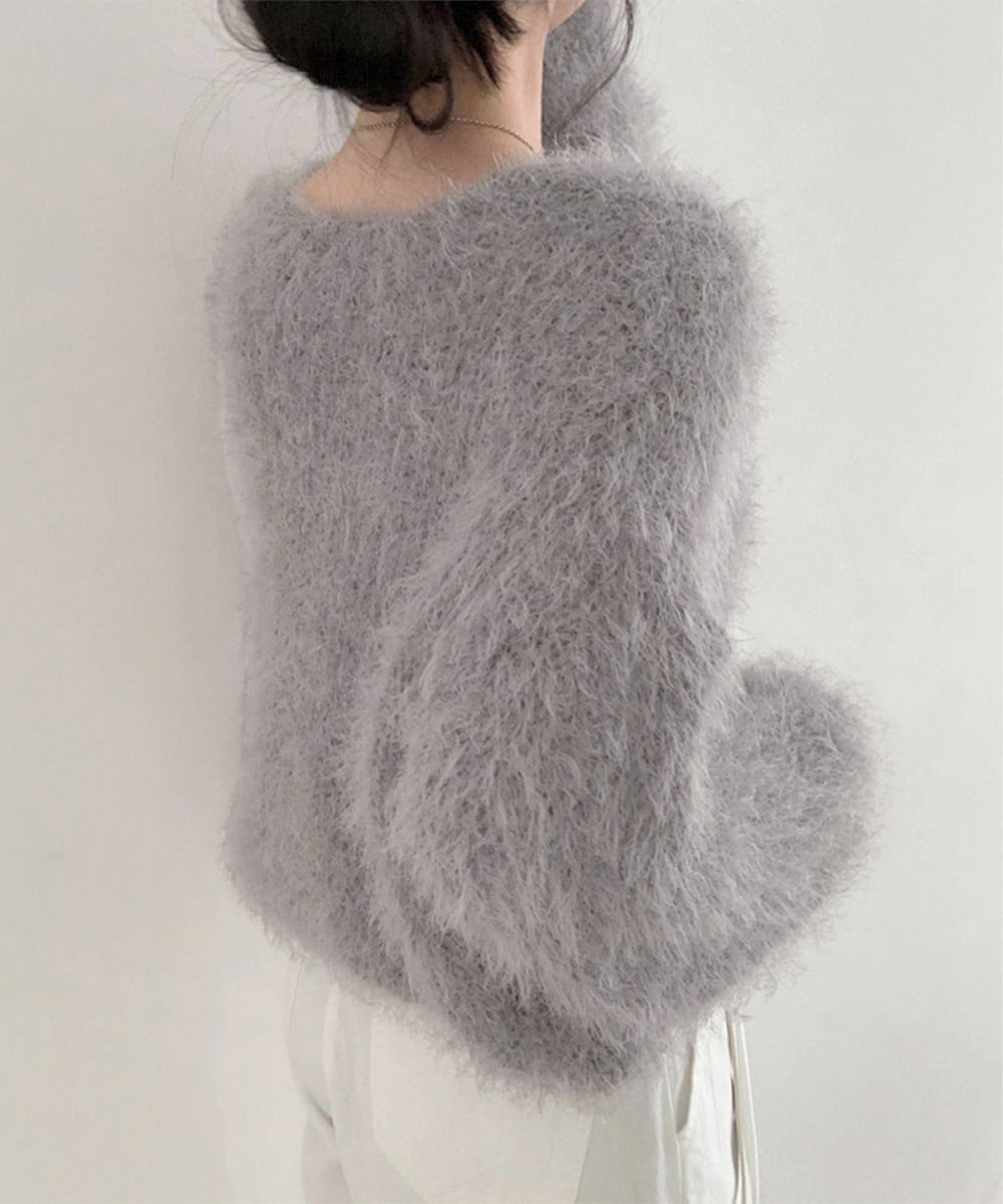毛足の長いふわっとしたニット素材は肌触りが柔らかく、レトロでフェミニンな雰囲気を演出。