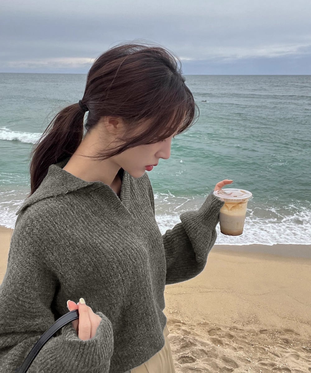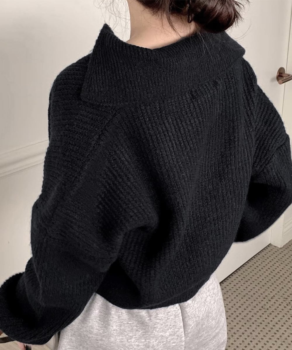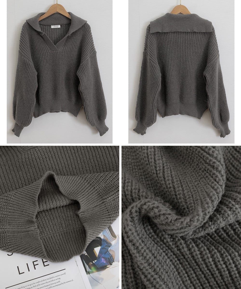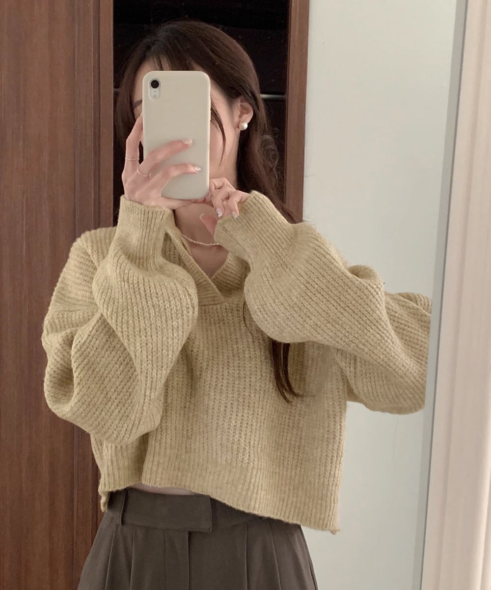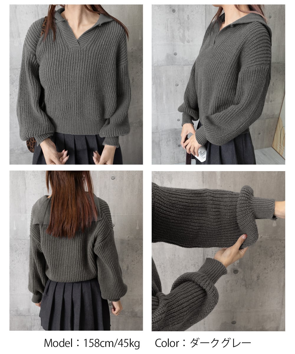 スキッパーニットvネック 襟付きセーター 87YANQIU-001