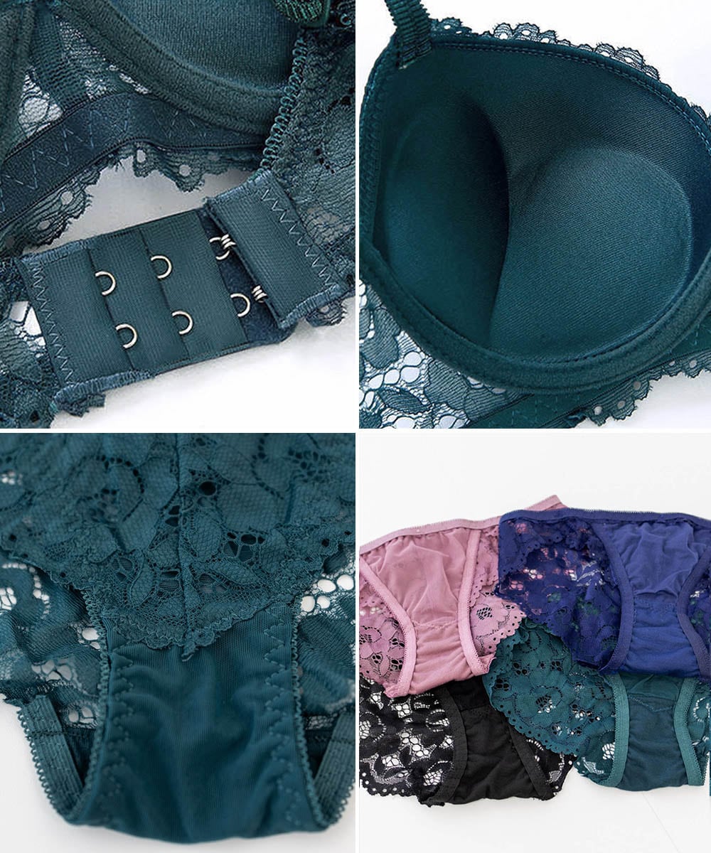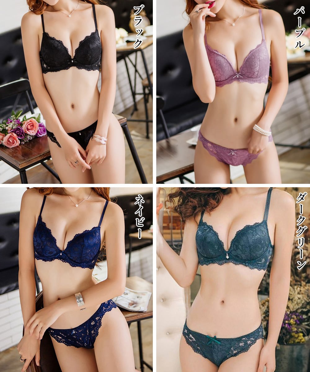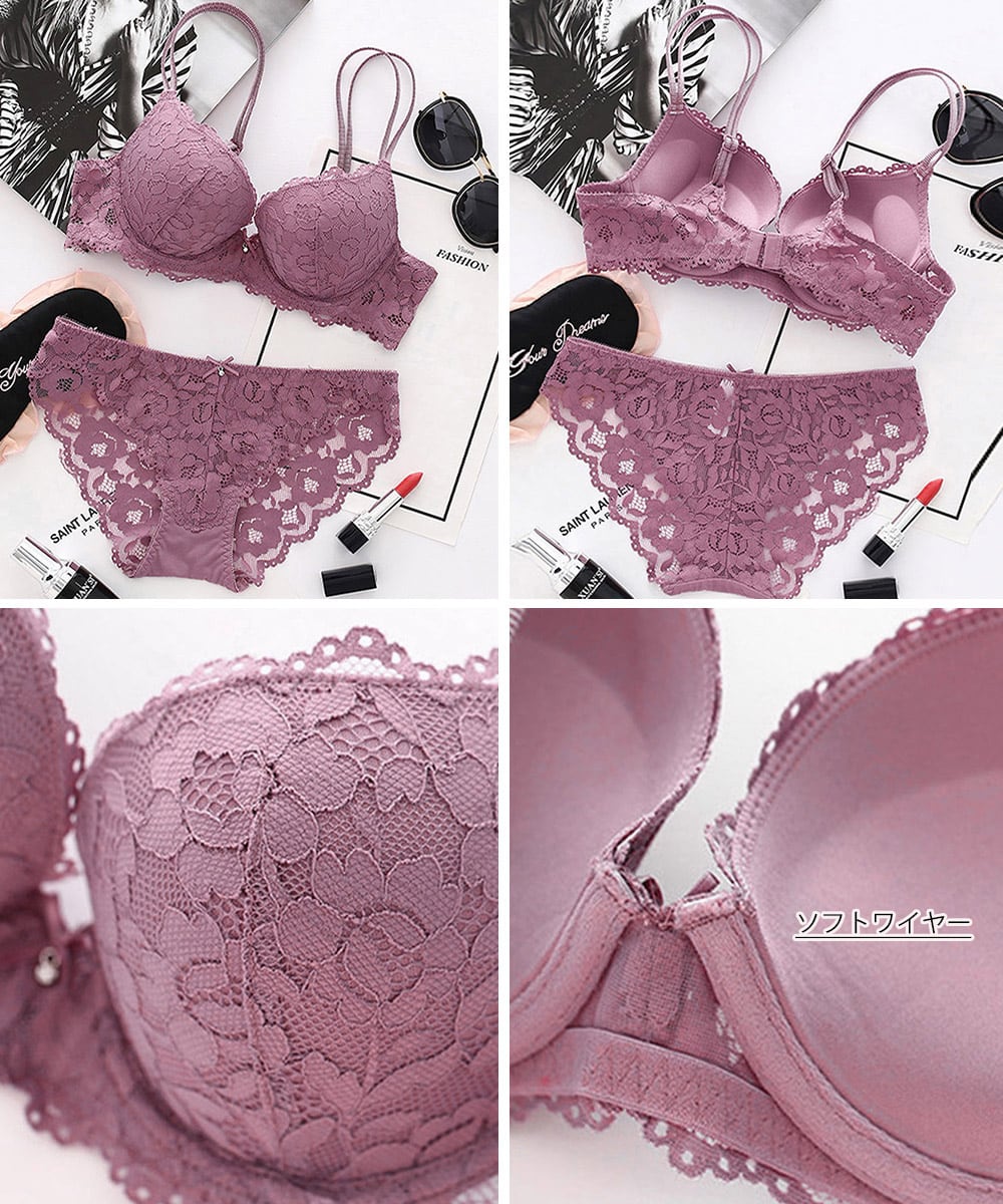 ソフトワイヤーブラジャー 透け透けショーツ バスト盛れる 花柄レース下着 セクシーインナー 勝負下着 谷間見せ 小胸ブラ
