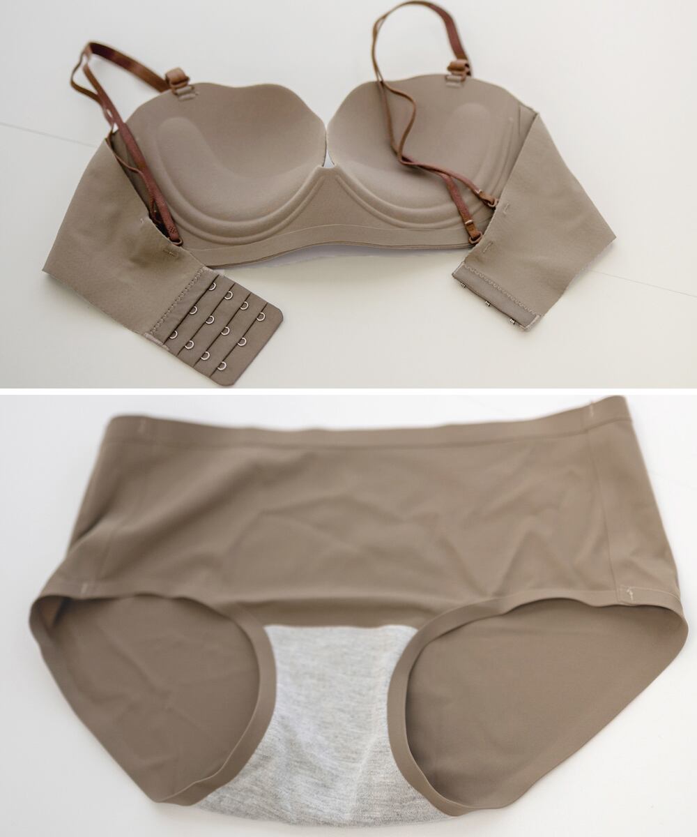 ワイヤーなしで締め付けなく、快適な着心地がpointのブラジャーとショーツのセットアップ