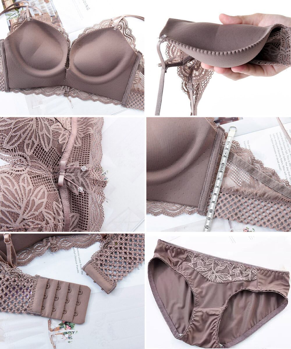 繊細なボタニカル柄レースを使用、セクシーで美しいワイヤーレス下着上下セット