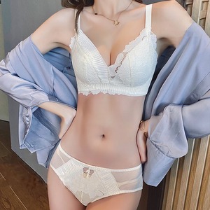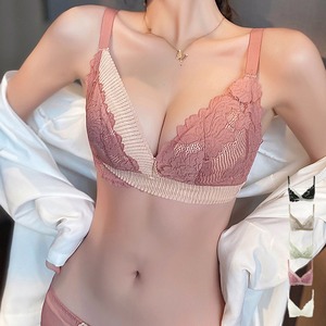 レディース ノンワイヤーレースブラ ショーツ セット 脇高ブラ 盛れる 谷間 ブラジャー らくちん ショーツ 透け透け